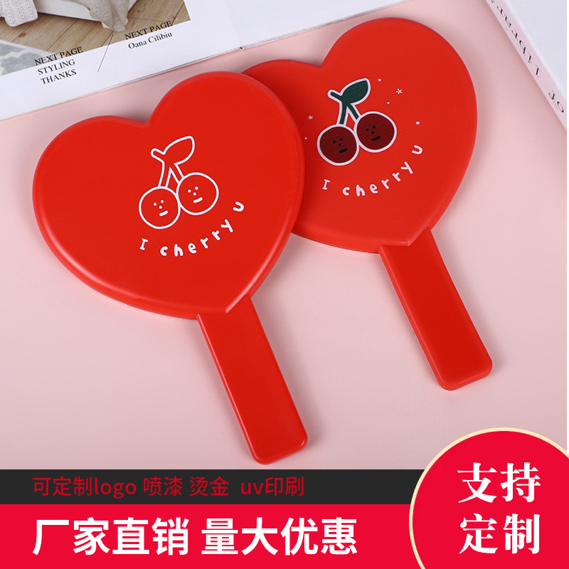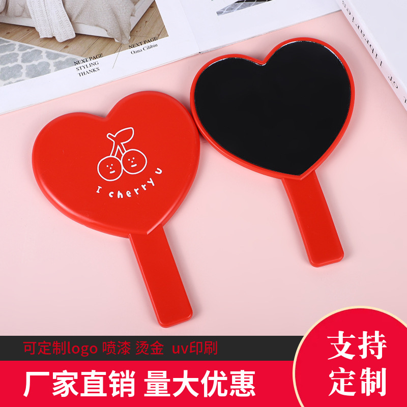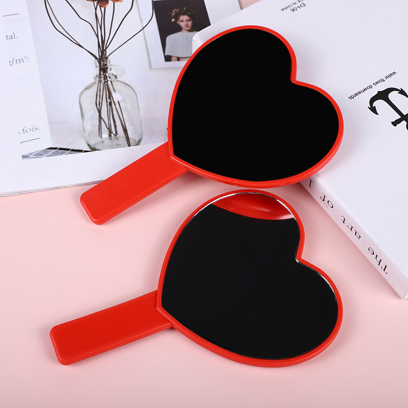 cute heart shape cosmetic mirror simple and convenient portable hand-hold mirror girls dormitory mini glass mirror