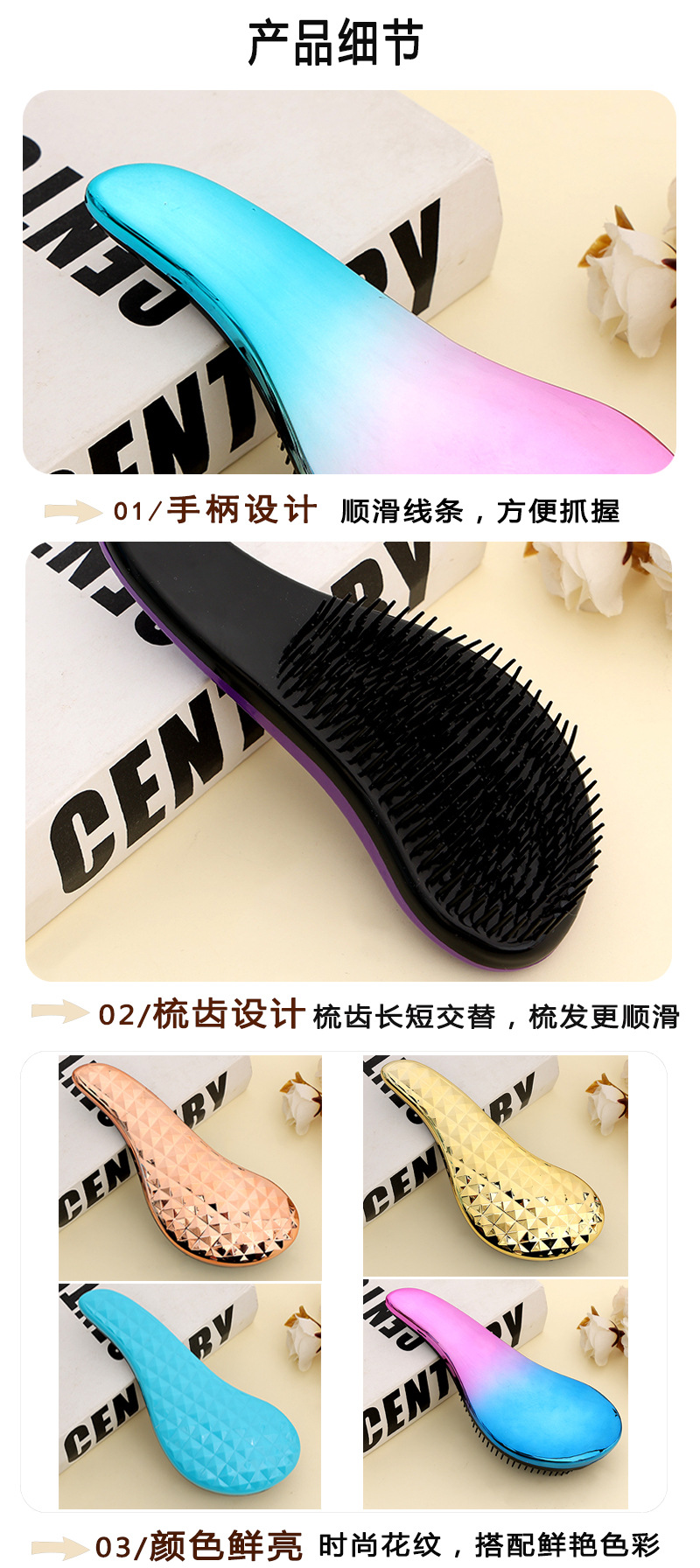 diamond surface electroplating hairdressing comb colorful gradient electroplating massage comb travel portable multi-color tangle teezer hairbrush fluffy hair comb