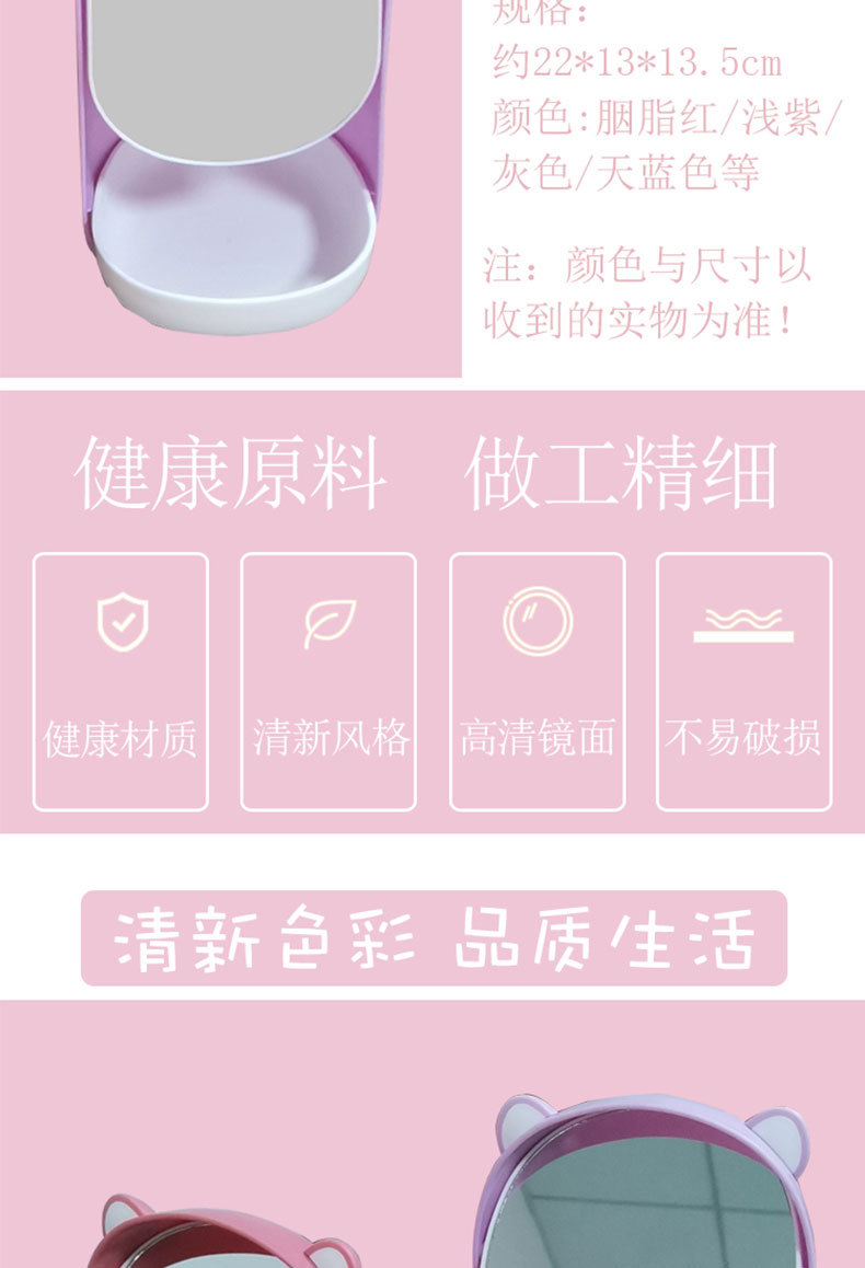 girl's heart net red desktop desktop makeup mirror student dormitory mirror storage integrated portable stand dressing mirror