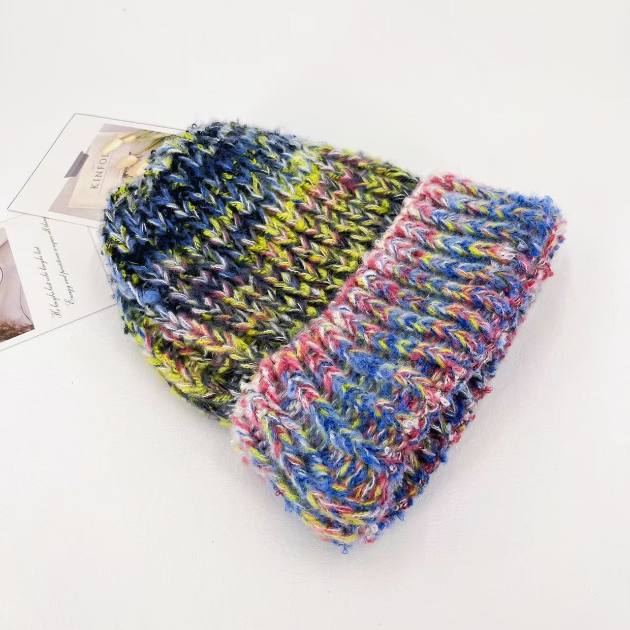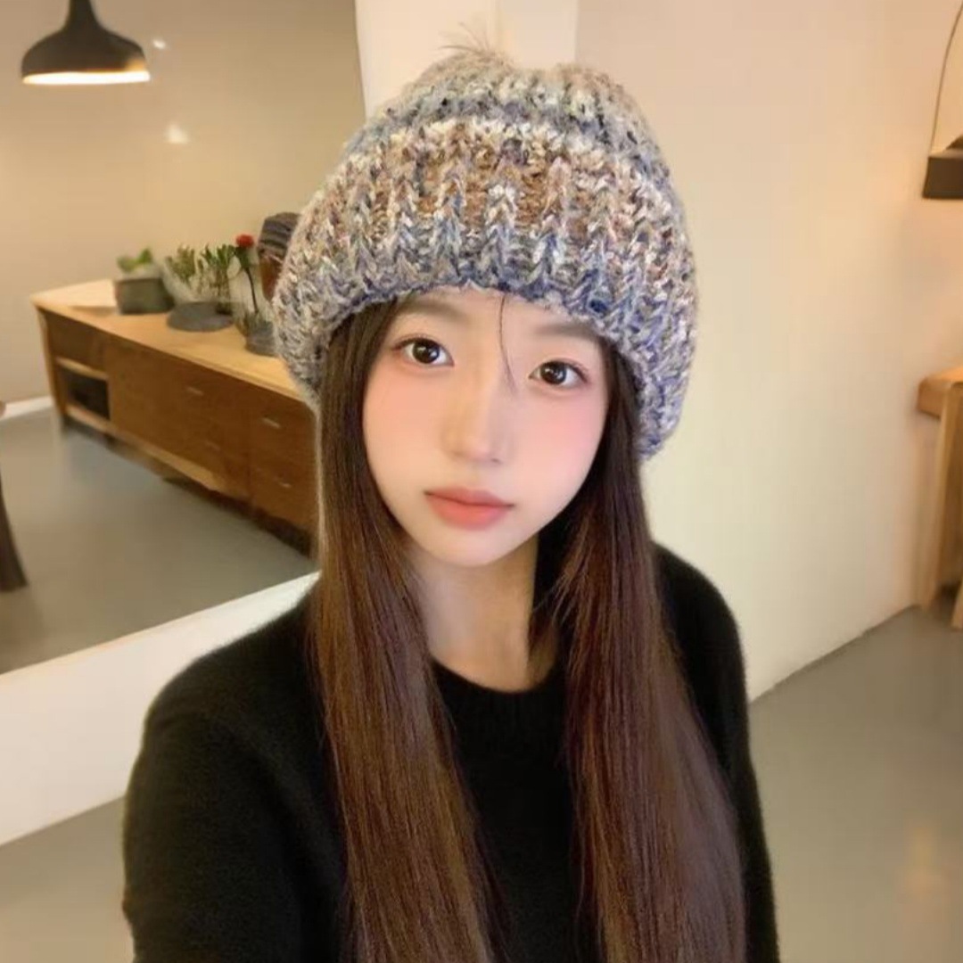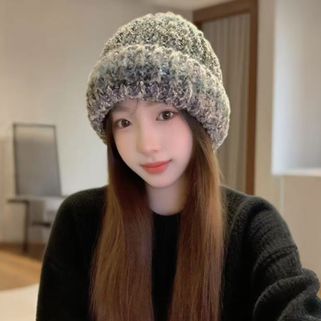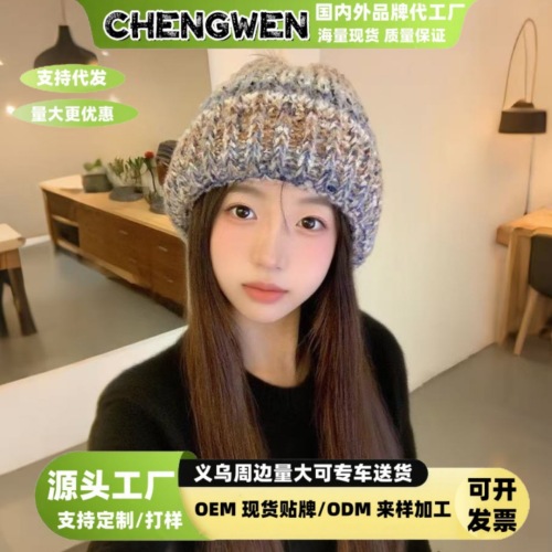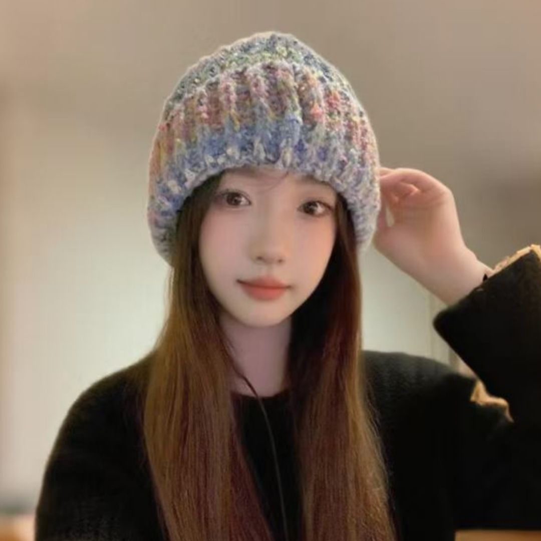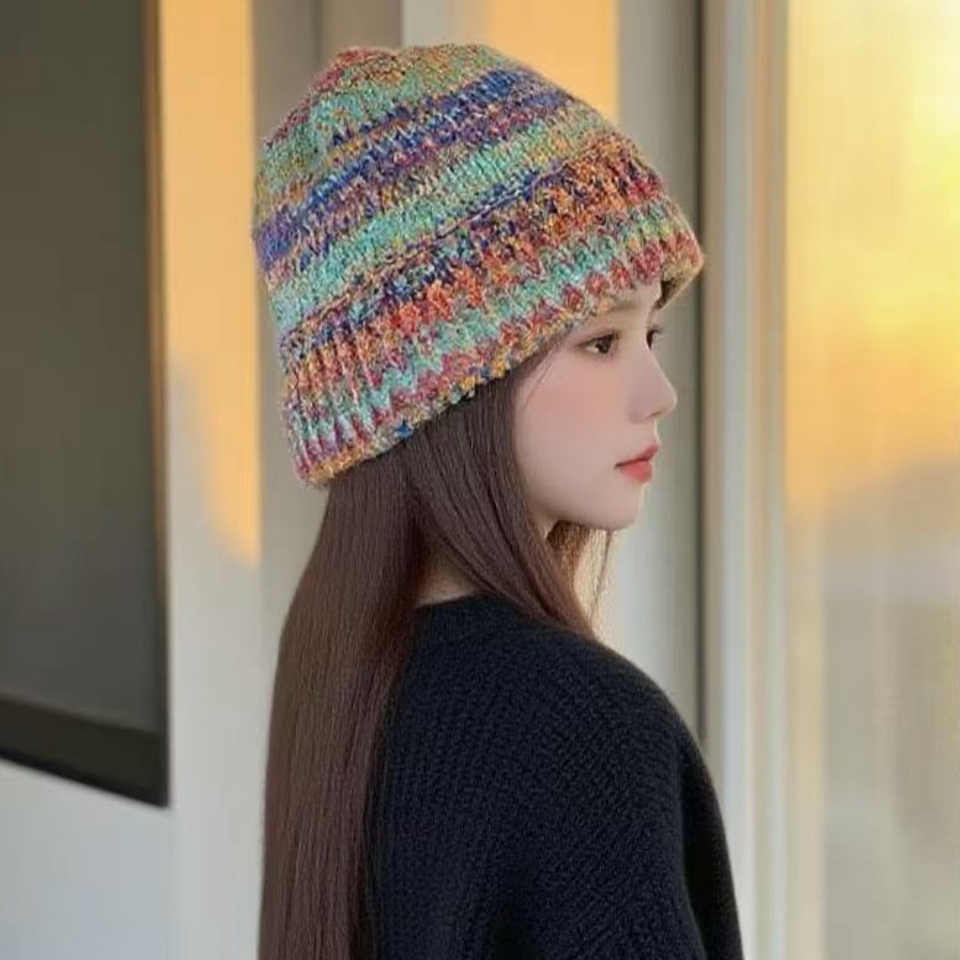 gradient stripes knitted hat children's autumn and winter dopamine face little wild woolen cap warm ear protection beanie hat 中文版