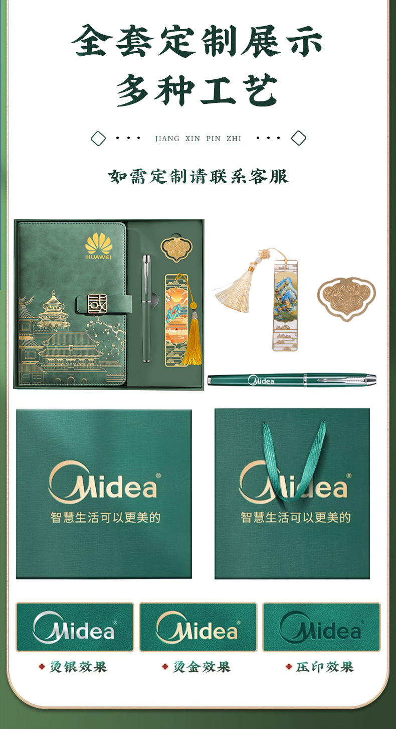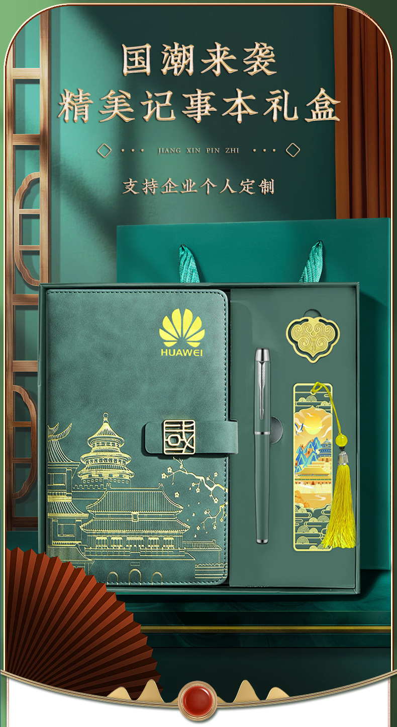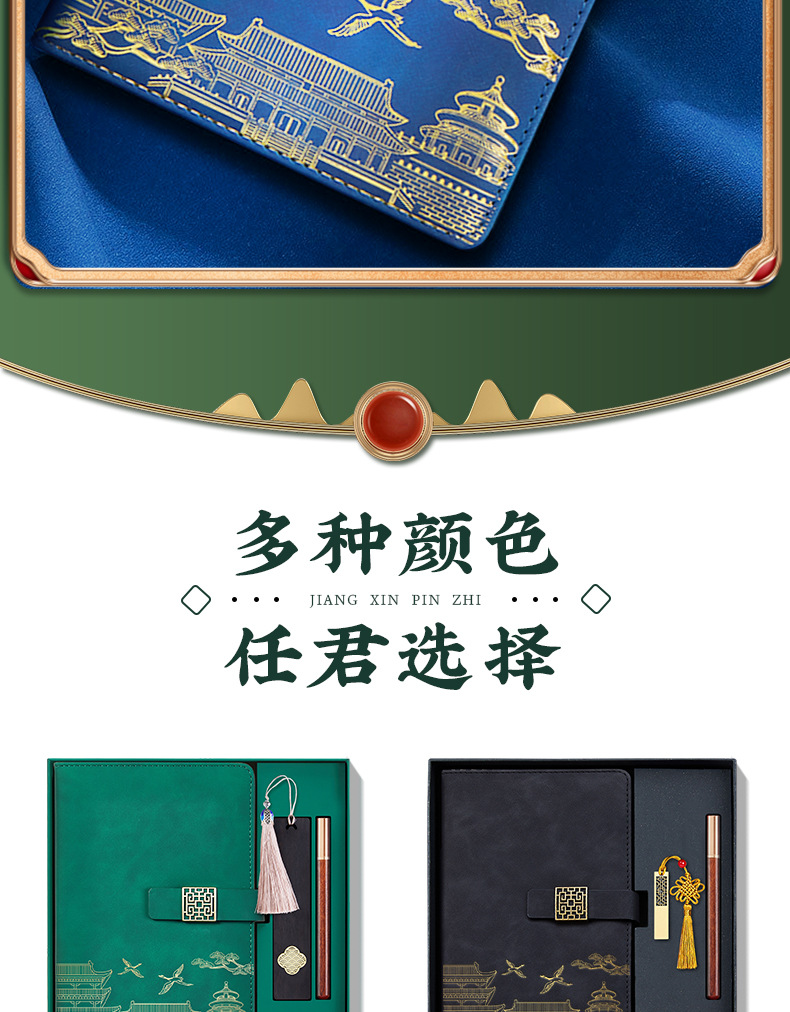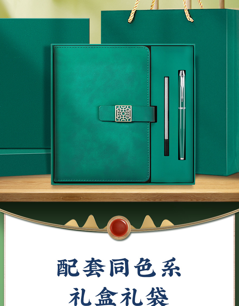 [high-end gift box + window flower u disk + wood grain pen + tassel bookmark] a5 dark green national character buckle