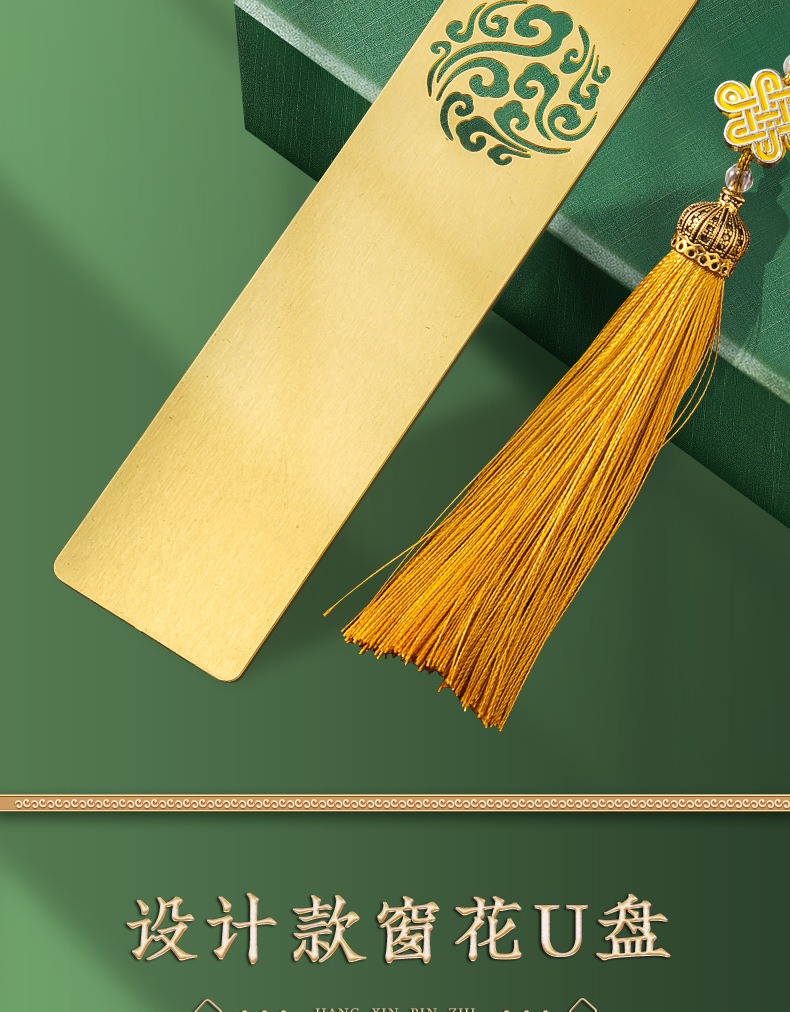 [high-end gift box + window flower u disk + wood grain pen + tassel bookmark] a5 black guochao window flower buckle
