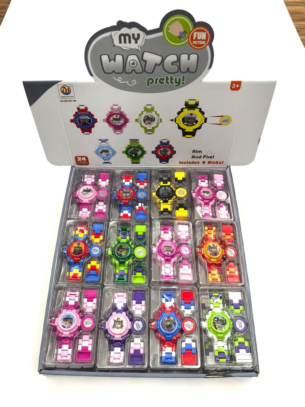 children's cartoon spider-man my little pony flip glass rotating watch-mh168-182