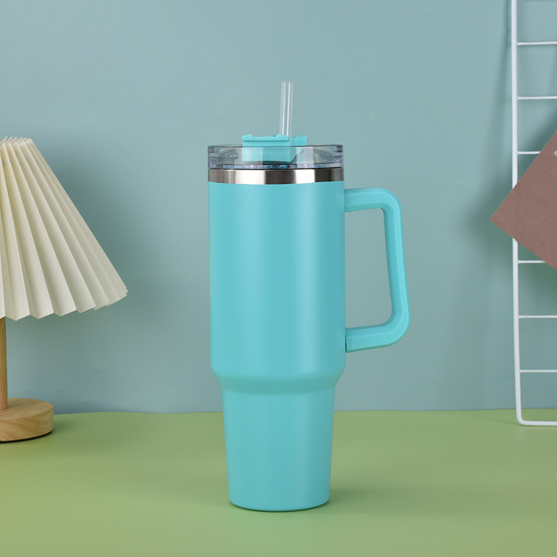 customized 40oz stainless steel handle cup large capacity vacuum straw thermal insulation cup car portable large ice cup