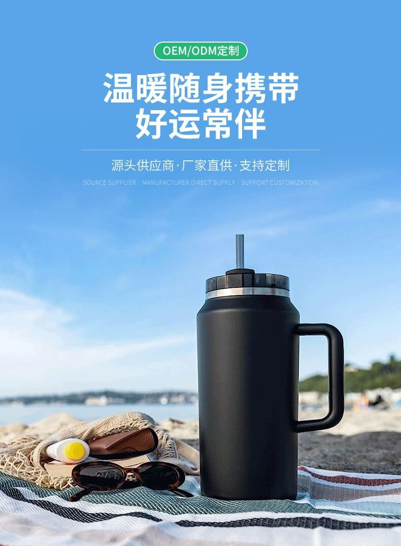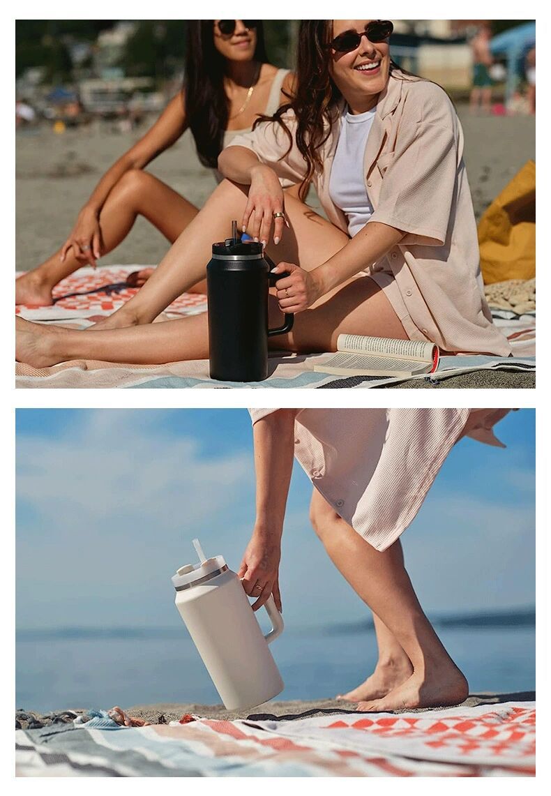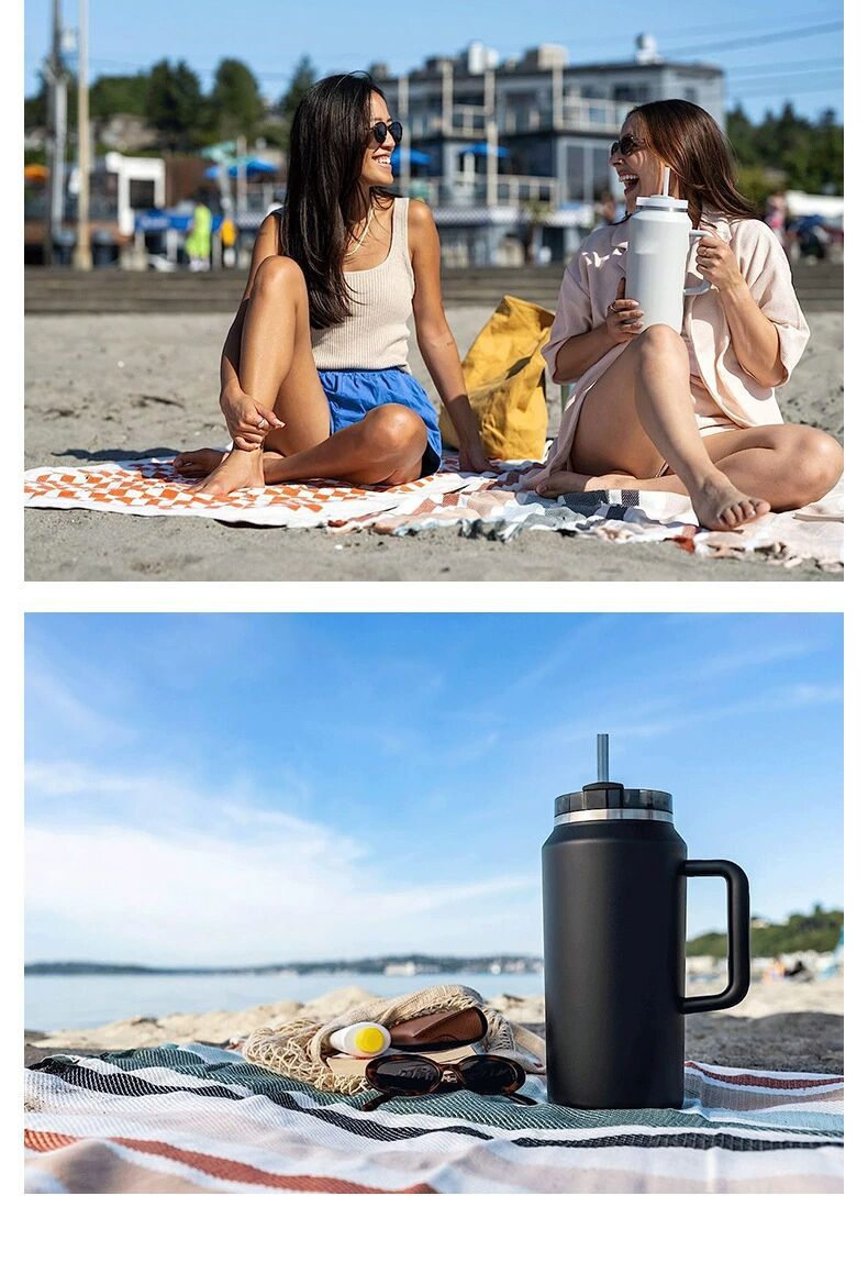 cross-border new arrival 64oz space pot large capacity 304 stainless steel vacuum cup portable with handle cold preservation cup with straw
