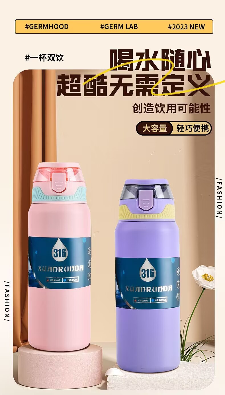 cross-border double drink bounce sports kettle 316 stainless steel vacuum thermos cup large capacity outdoor mountaineering travel pot