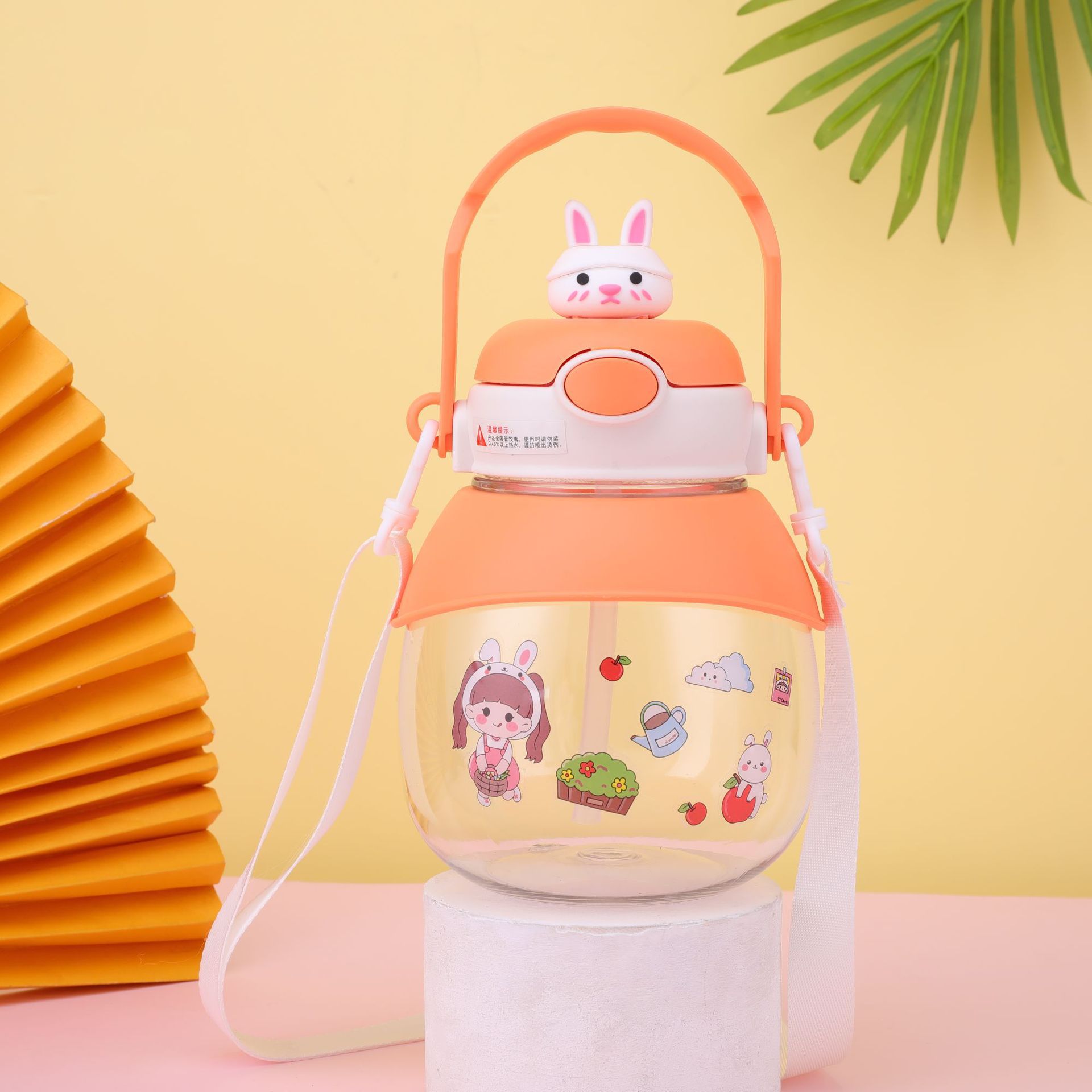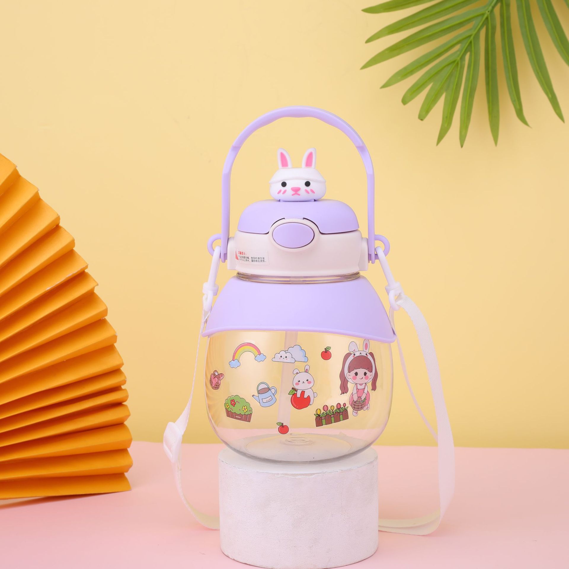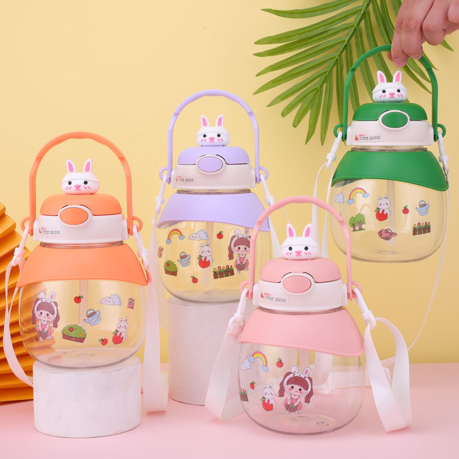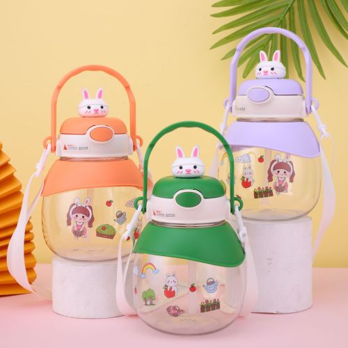 good-looking ins cartoon doll rabbit plastic cup large capacity strap straw portable bullet cup portable big belly cup