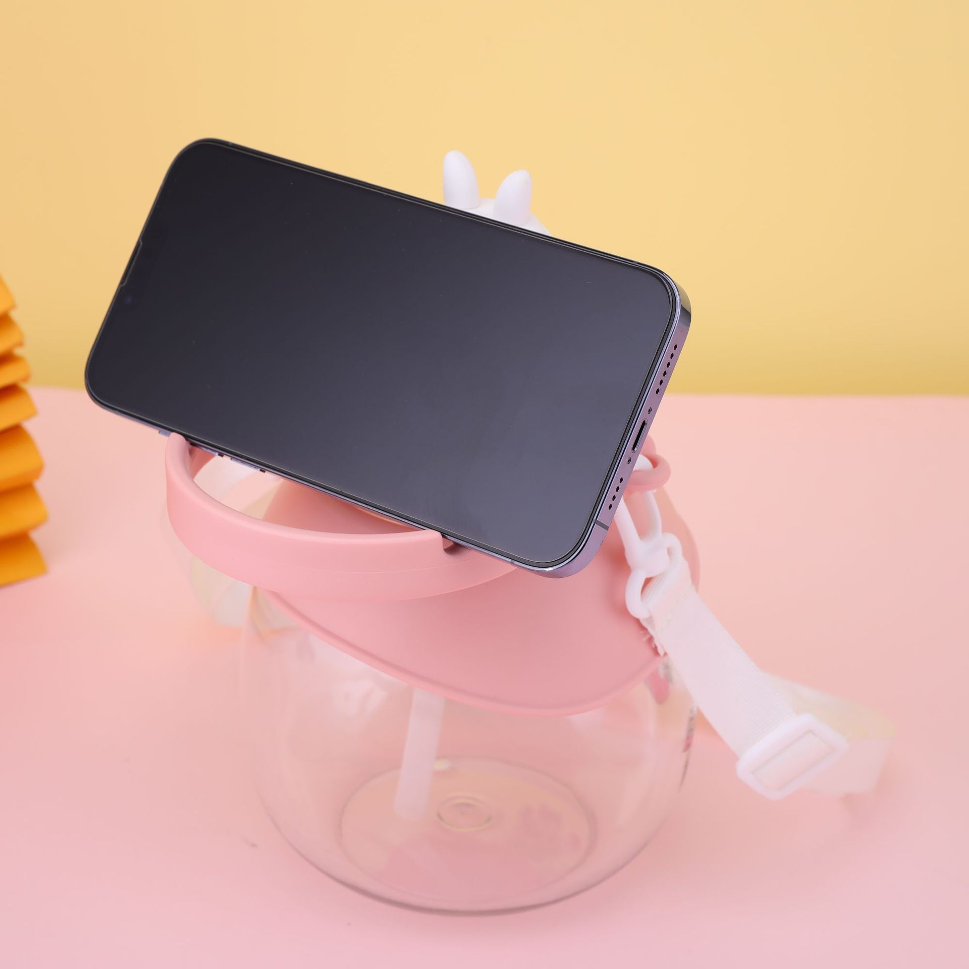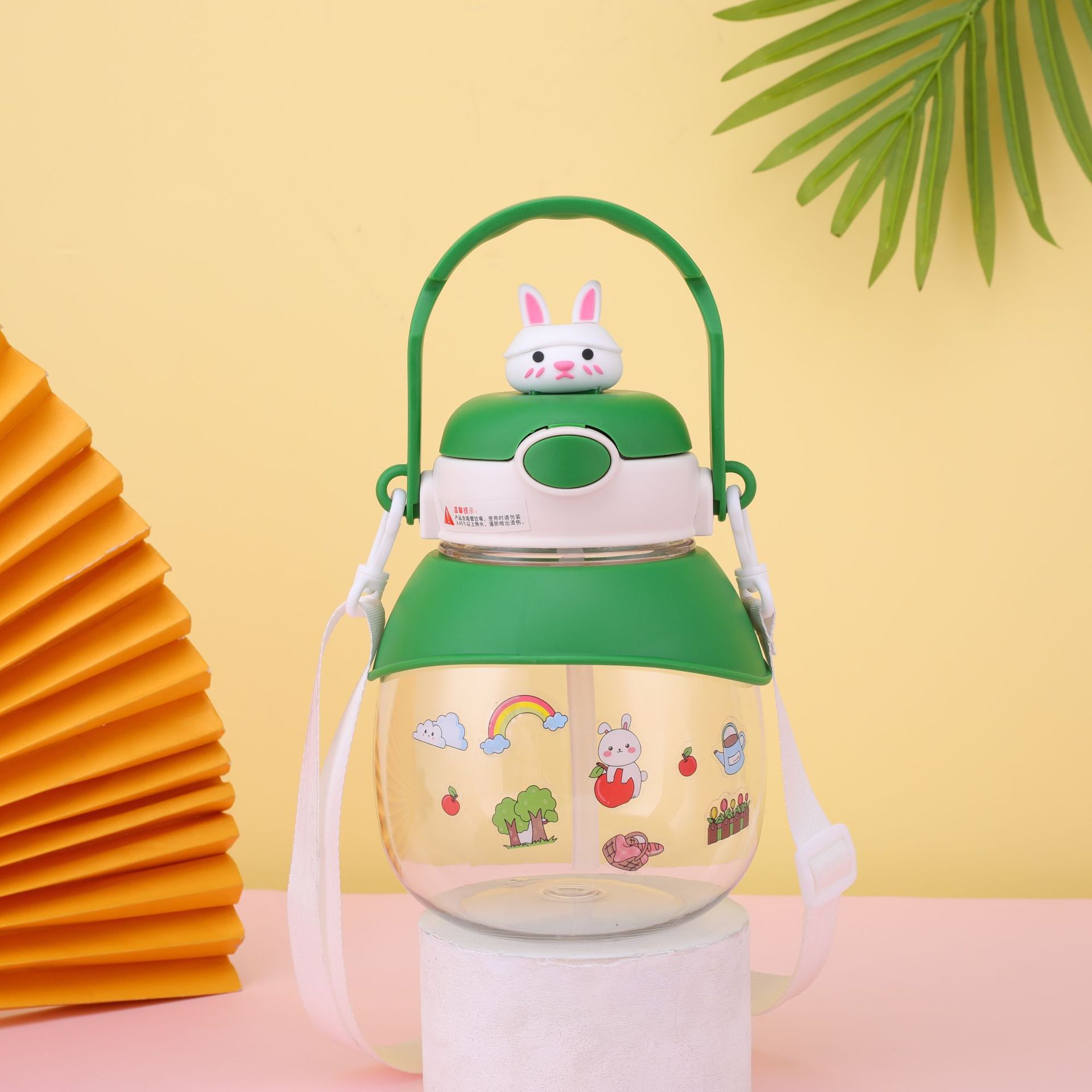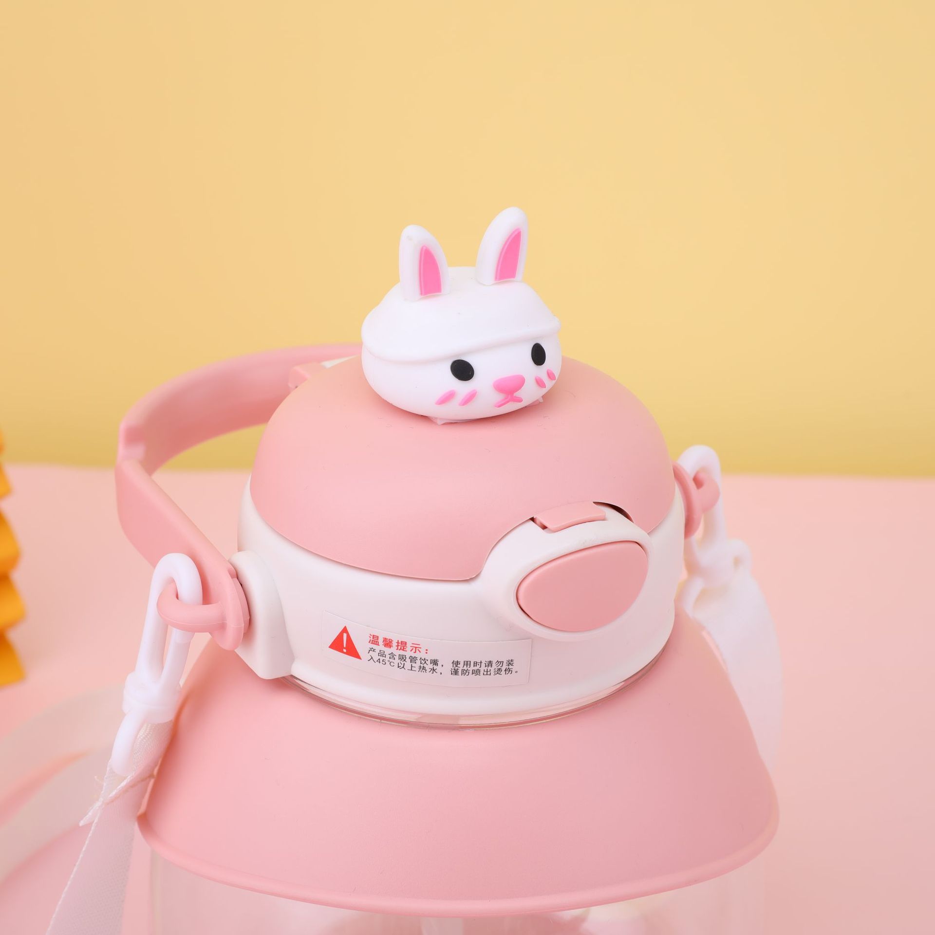 good-looking ins cartoon doll rabbit plastic cup large capacity strap straw portable bullet cup portable big belly cup