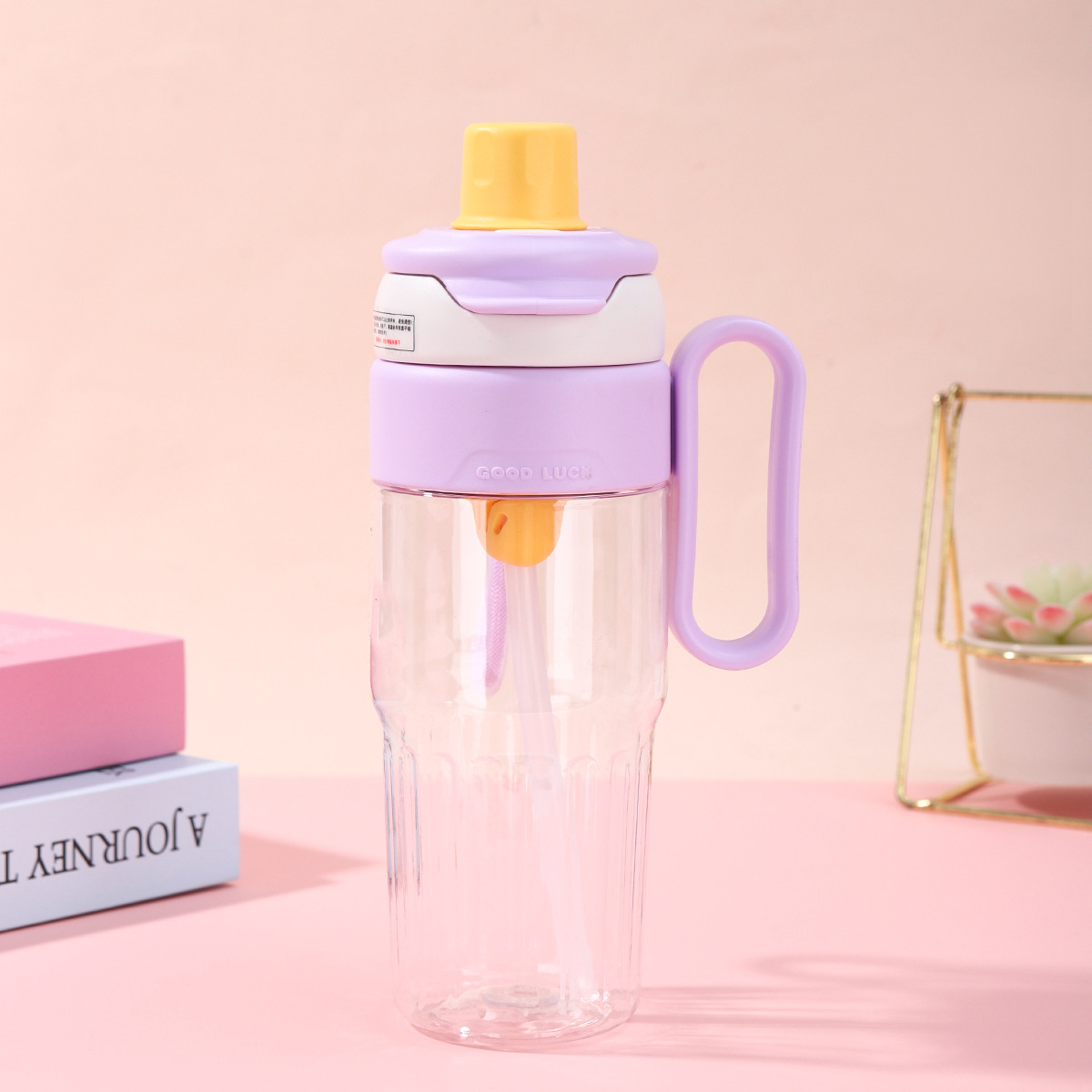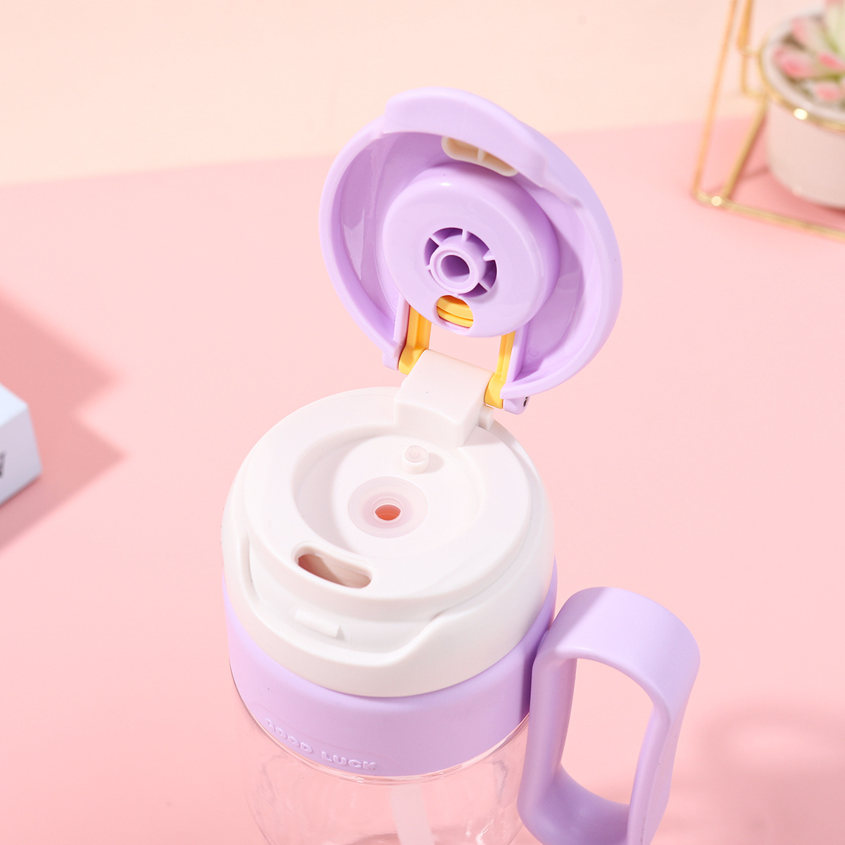 good-looking double drinking straw plastic water cup high temperature resistant tea water separation large flower tea cup large capacity portable handle cup