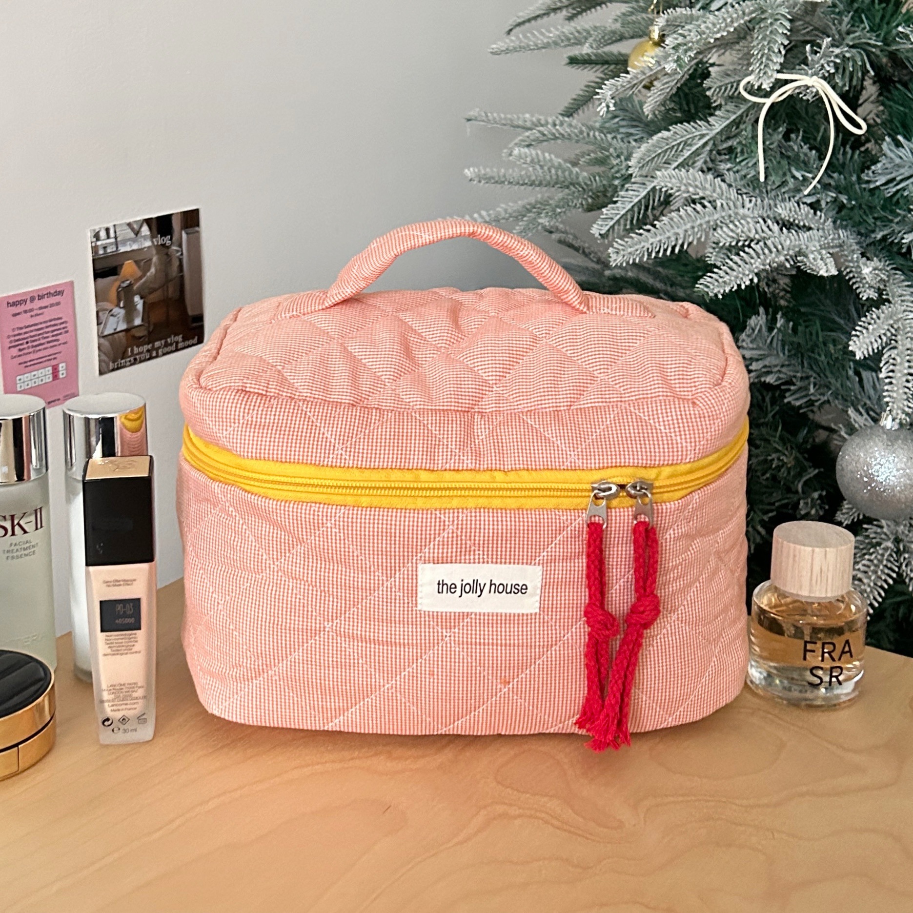 orange plaid storage bag