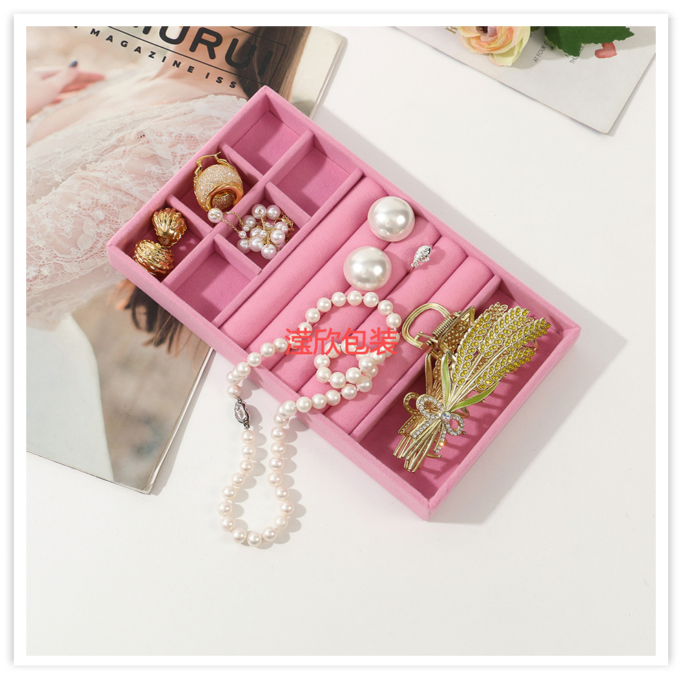 jewelry storage box flannel ear studs earring ring necklace jewelly dresser drawer tray compartment storage 中文版