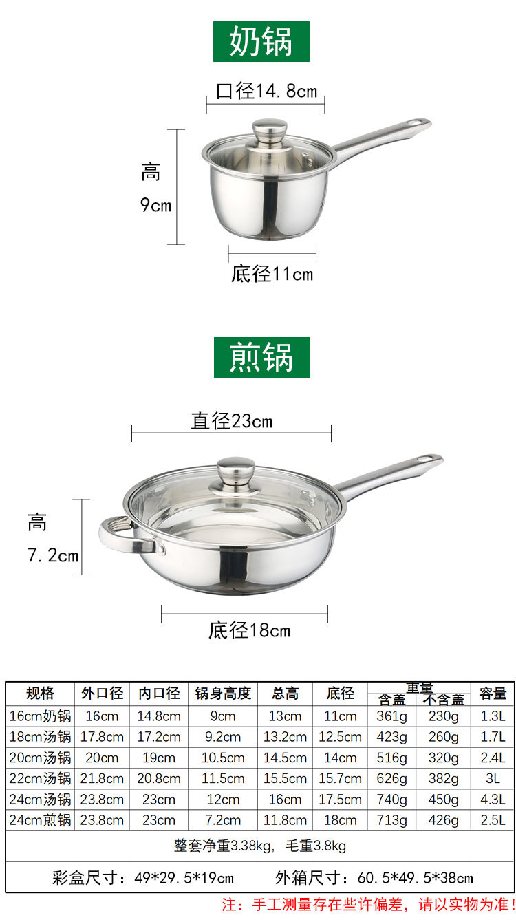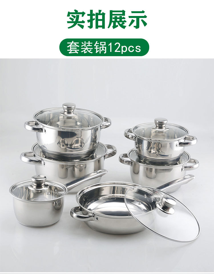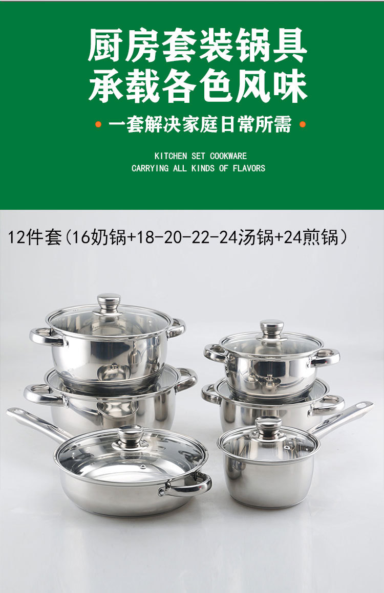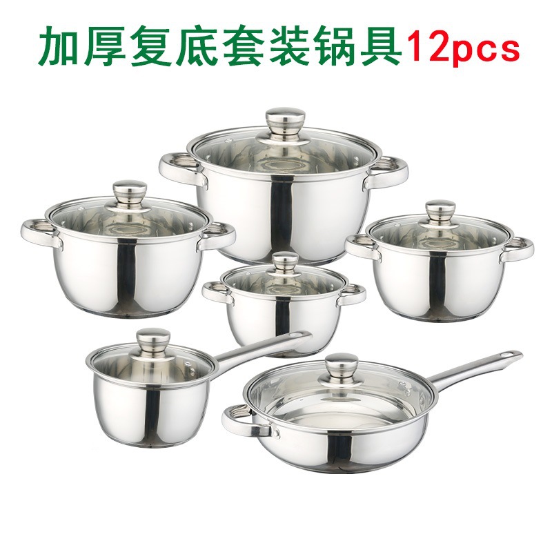 tube handle 12pcs double bottom [16cm milk pot-18-20-22-24cm soup pot-24cm frying pan]]