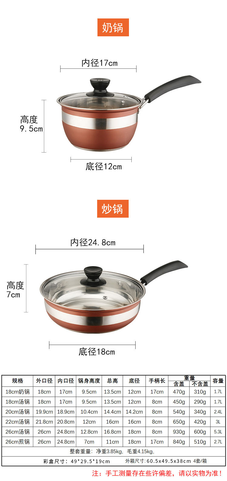 12pcs soup pot red 18 milk-18-20-22-26 soup-26 fried