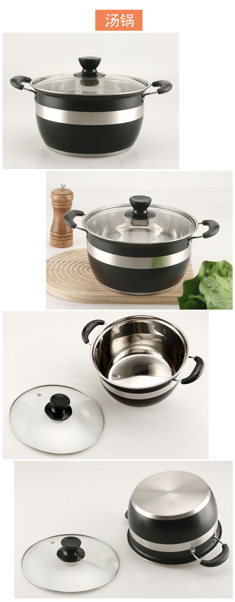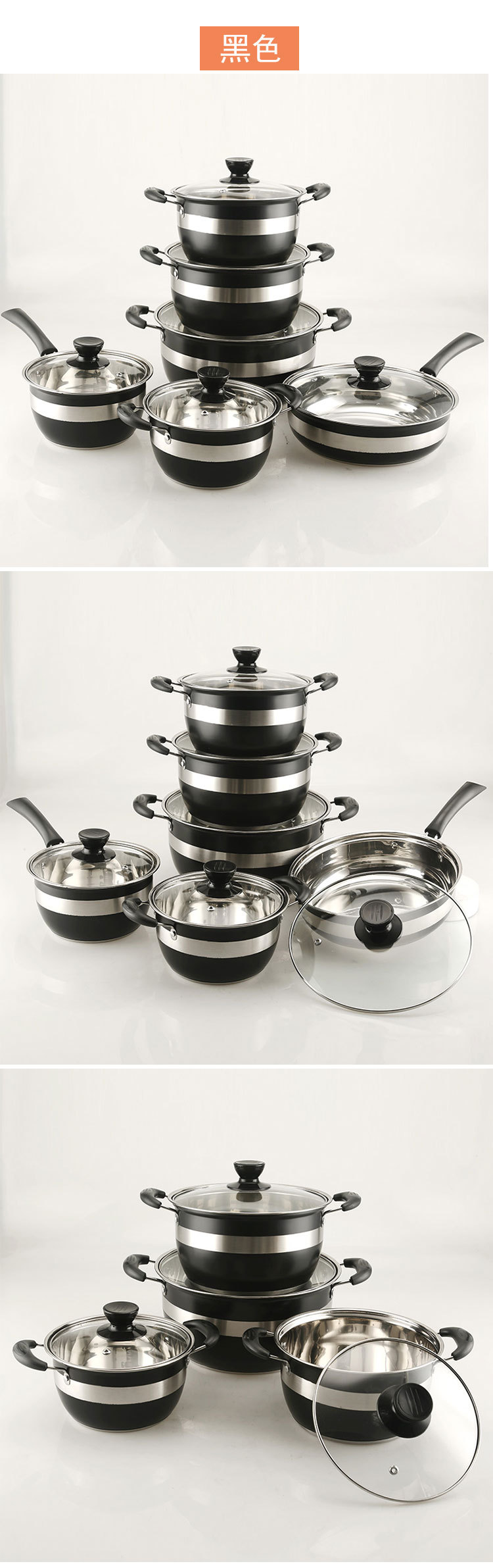 8pcs soup pot black 18-20-22-24cm