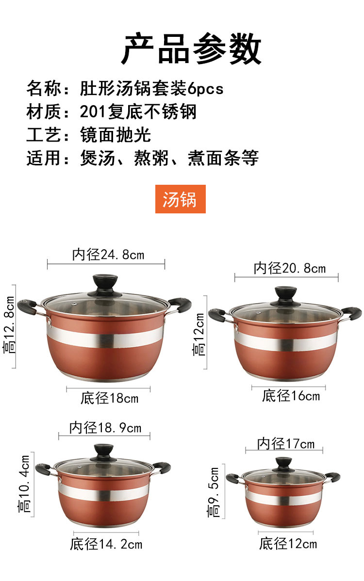 6pcs soup pot red 18-20-22cm