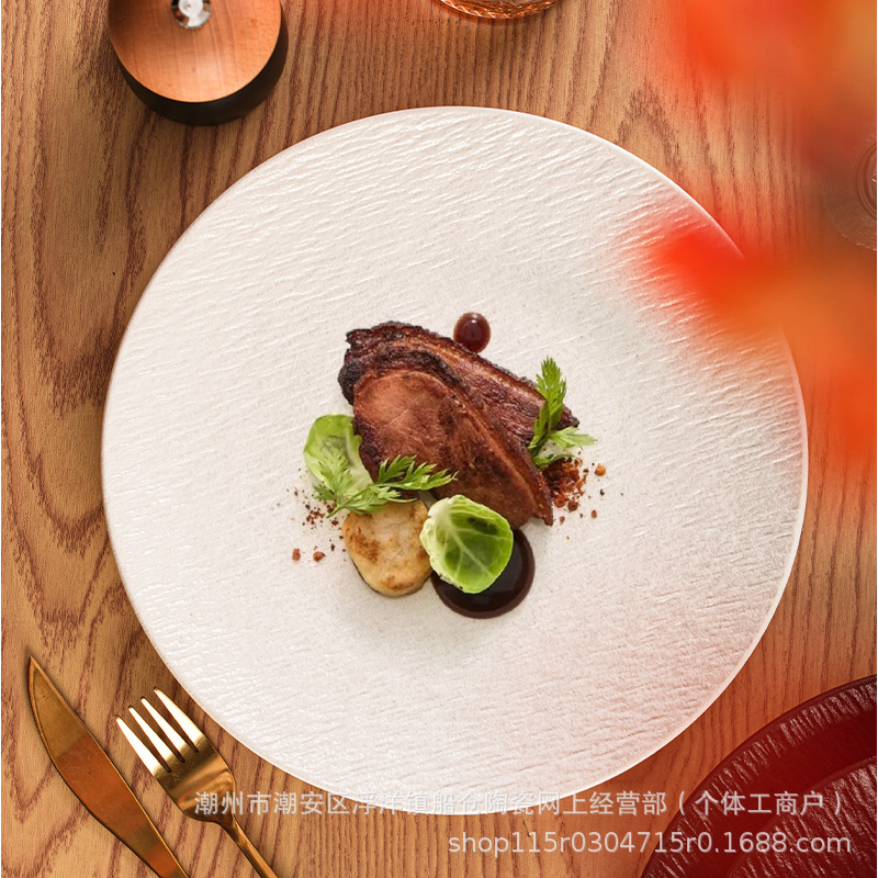 8-inch stone pattern shallow plate frosted white