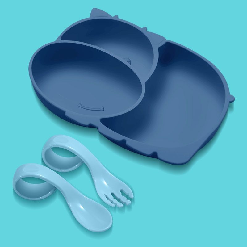 [blue] mengniu silicone plate + pp training spoon fork