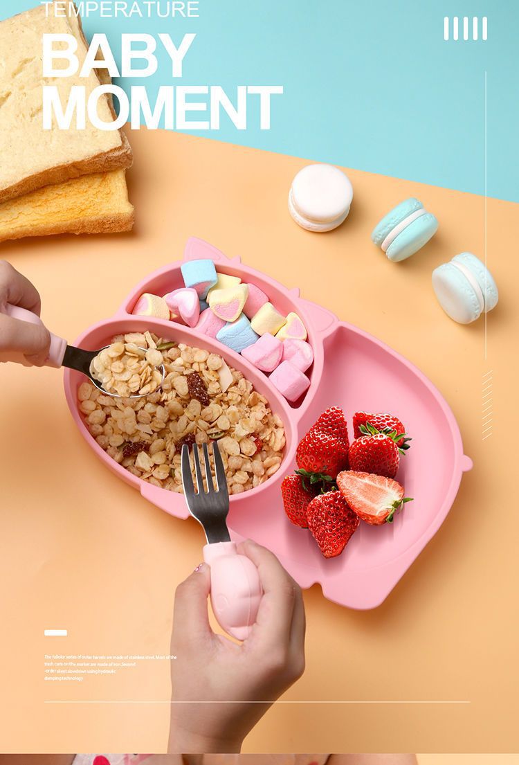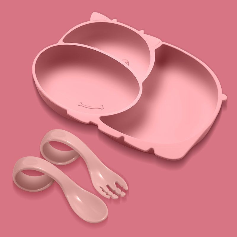 [pink] mengniu silicone plate + pp training spoon fork