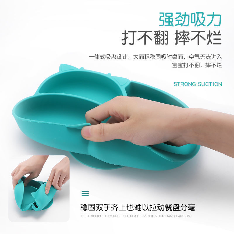 [green] mengniu silicone plate + pp training spoon fork