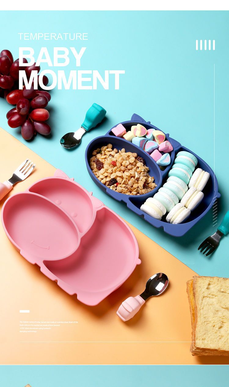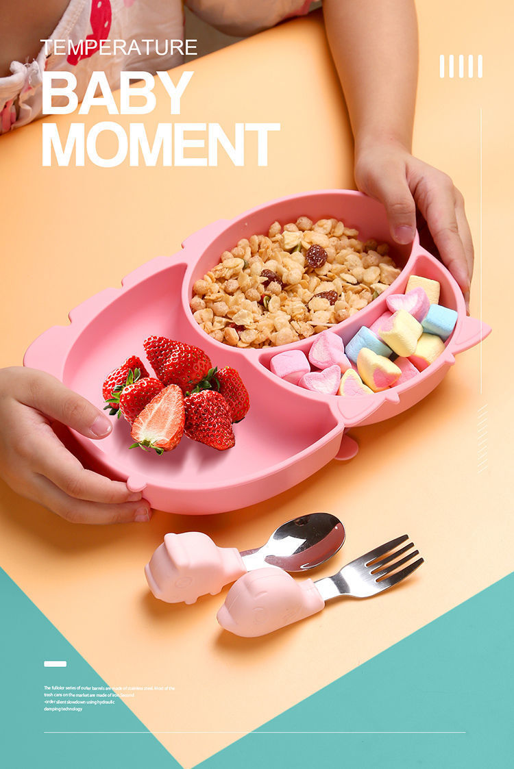 [red] mengniu silicone plate + pp training spoon fork