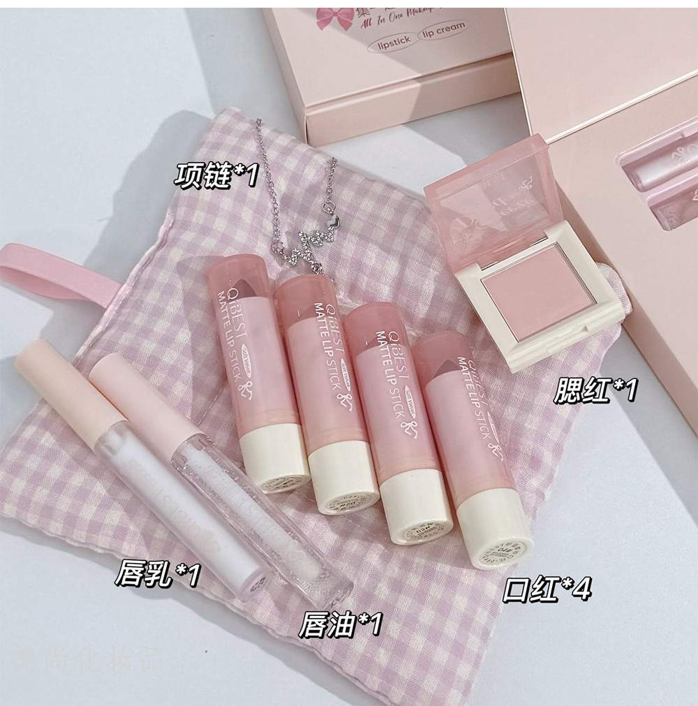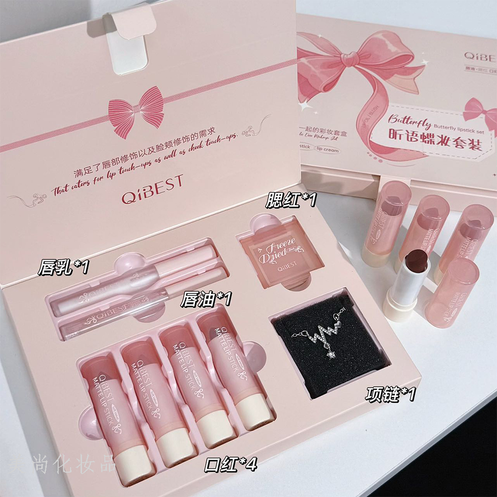 qibest butterfly makeup box lipstick blush lip gloss set box cute bow with necklace makeup gift box 中文版