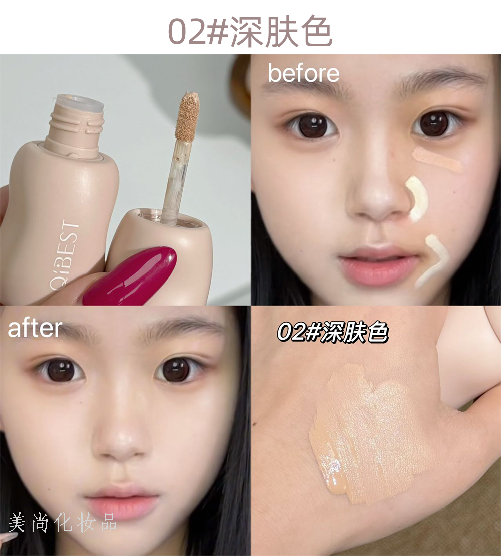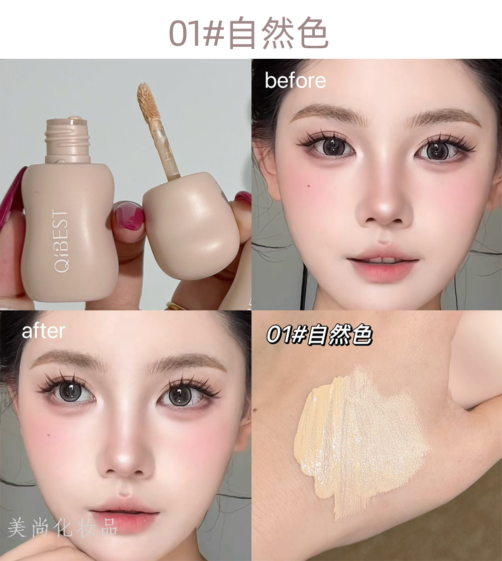 qibest natural soft focus liquid concealer cover fleck acne marks dark circles tears groove bang brightening feeling liquid concealer 中文版