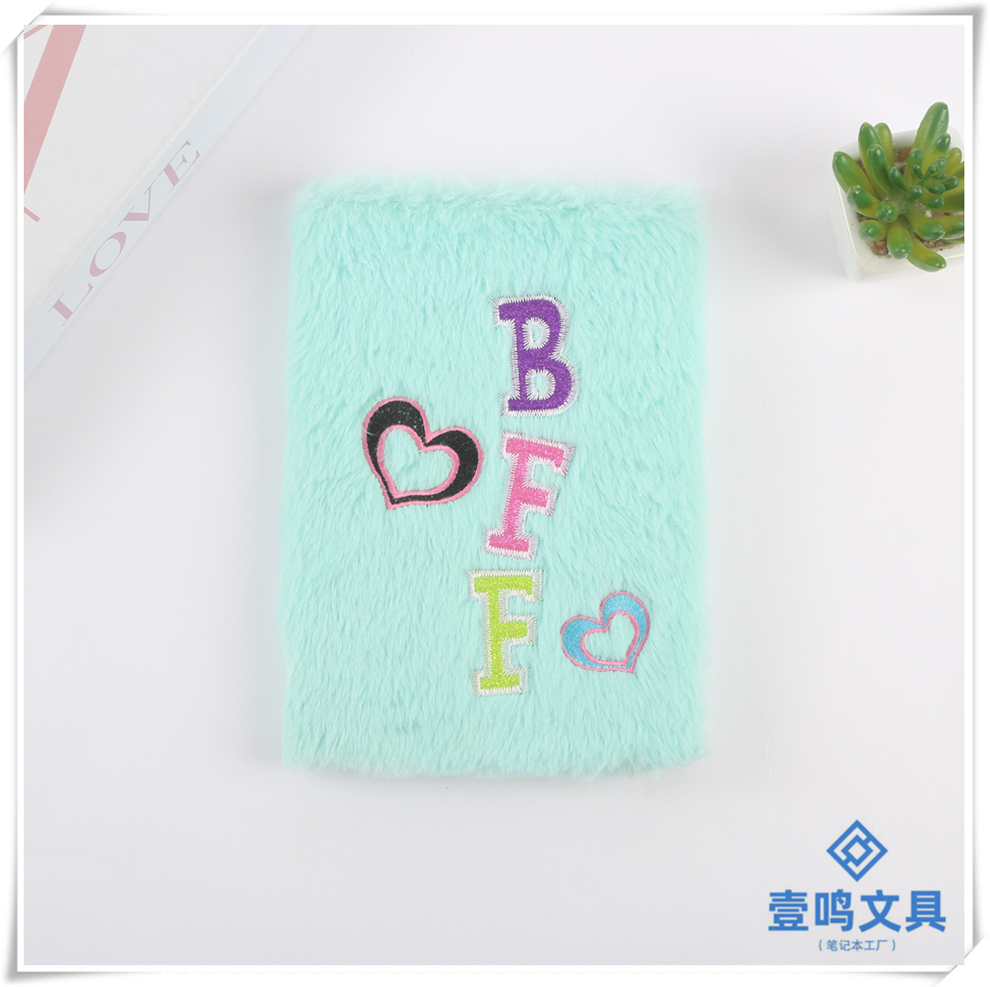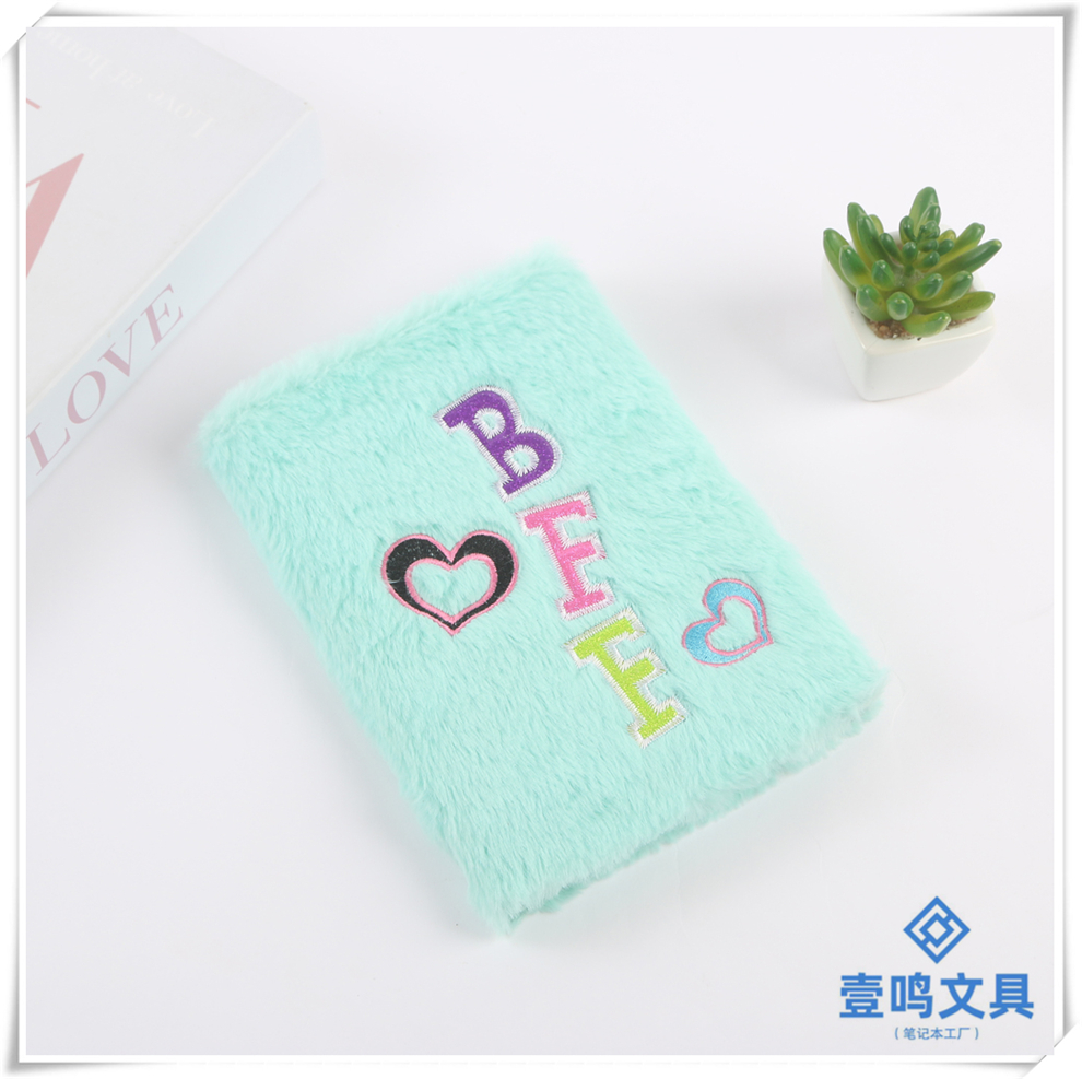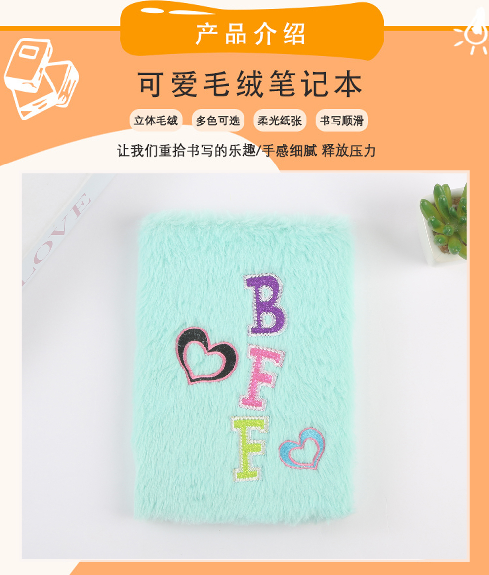 产品名称:英文字母桃心款毛绒笔记本 少女心可爱卡通日记本 学生书写本批发