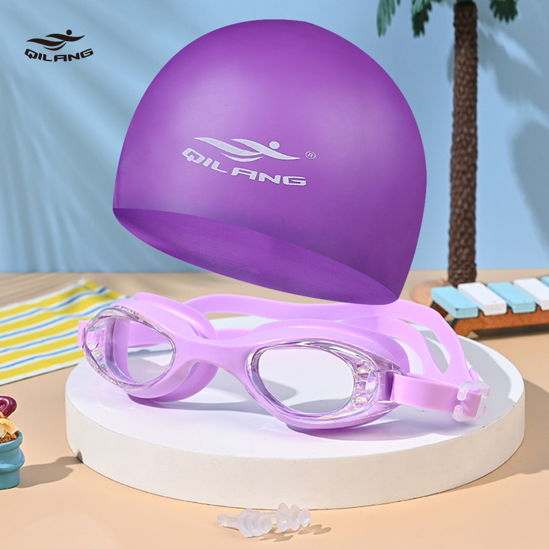 purple boxed + swimming cap