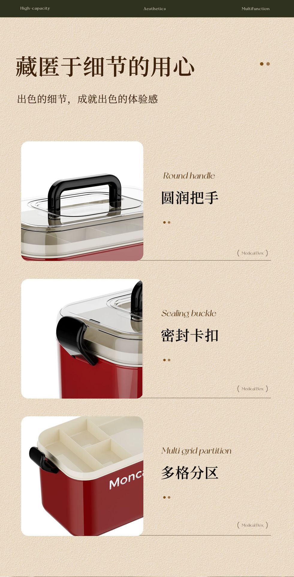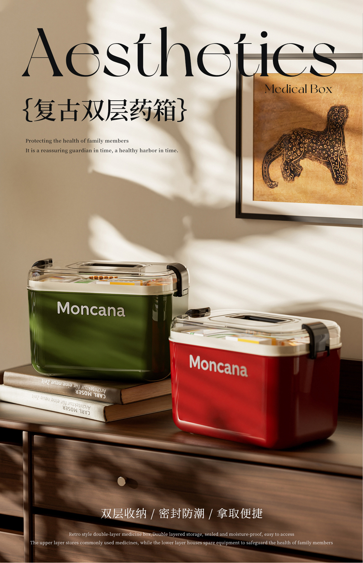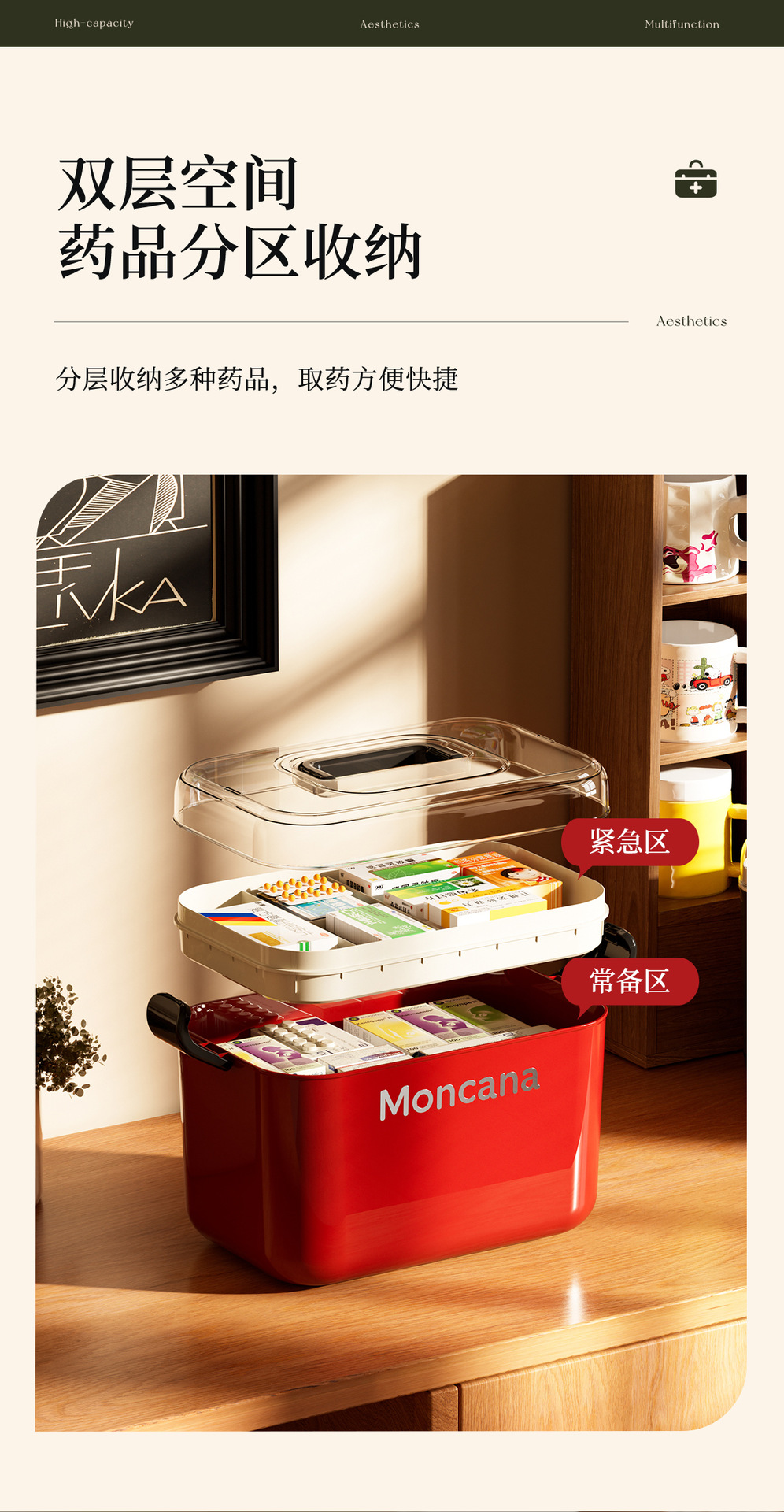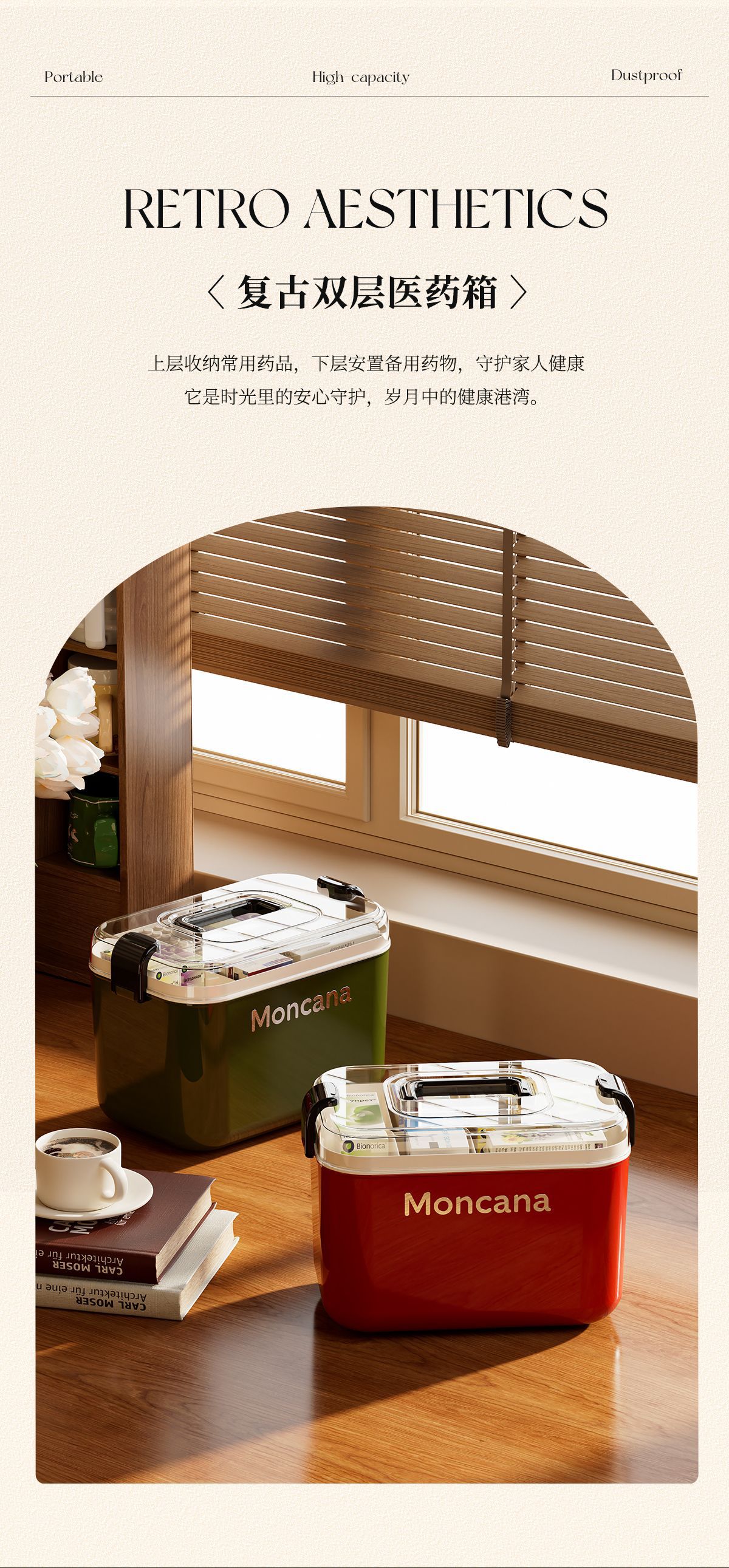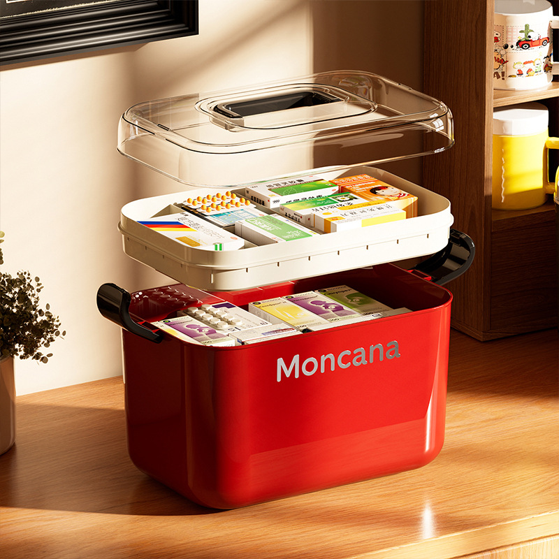 household retro medicine box storage box large capacity double layer medicine box medicine medicine storage box family pack first aid kit 中文版