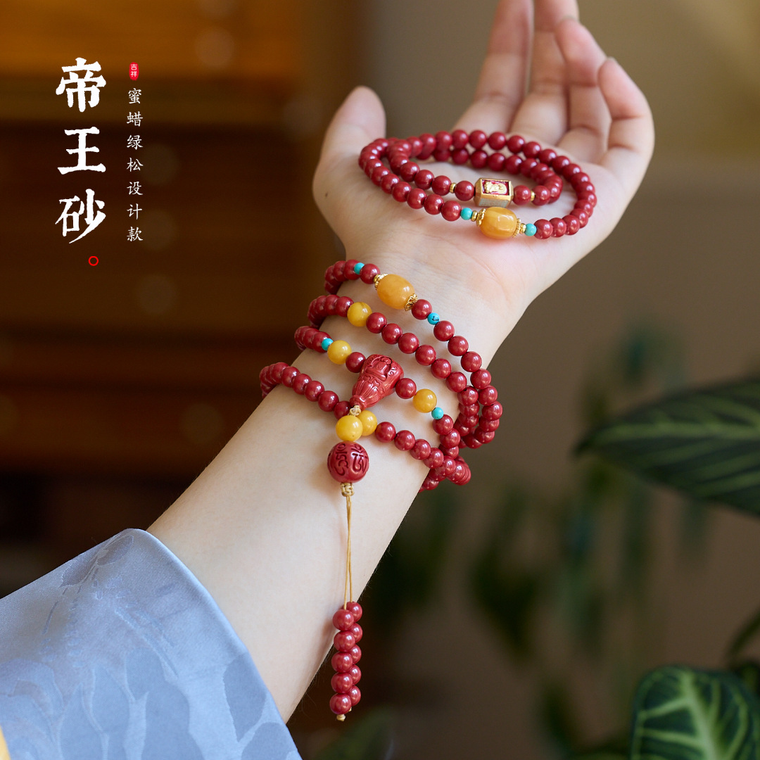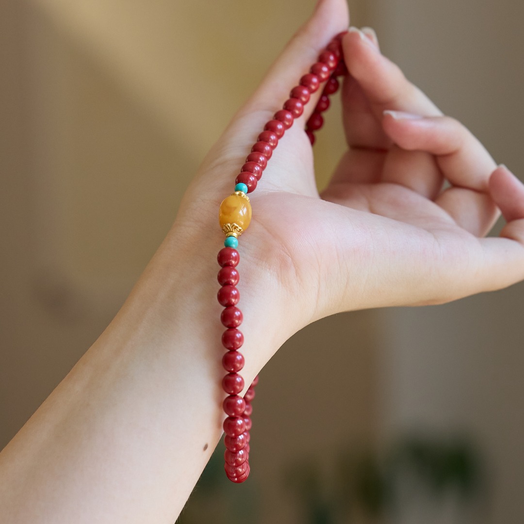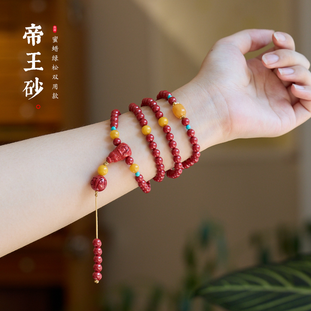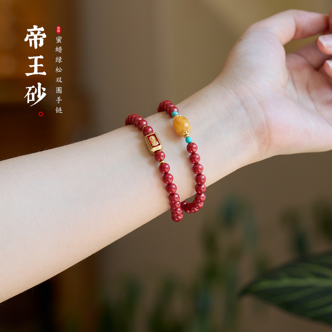 |主材|6MM高含量帝王砂,6MM蜜蜡,3MM绿松,手链适合14-16cm,项链约48cm