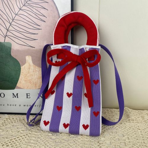 purple white vertical bar small love heart bow tie mobile phone bag