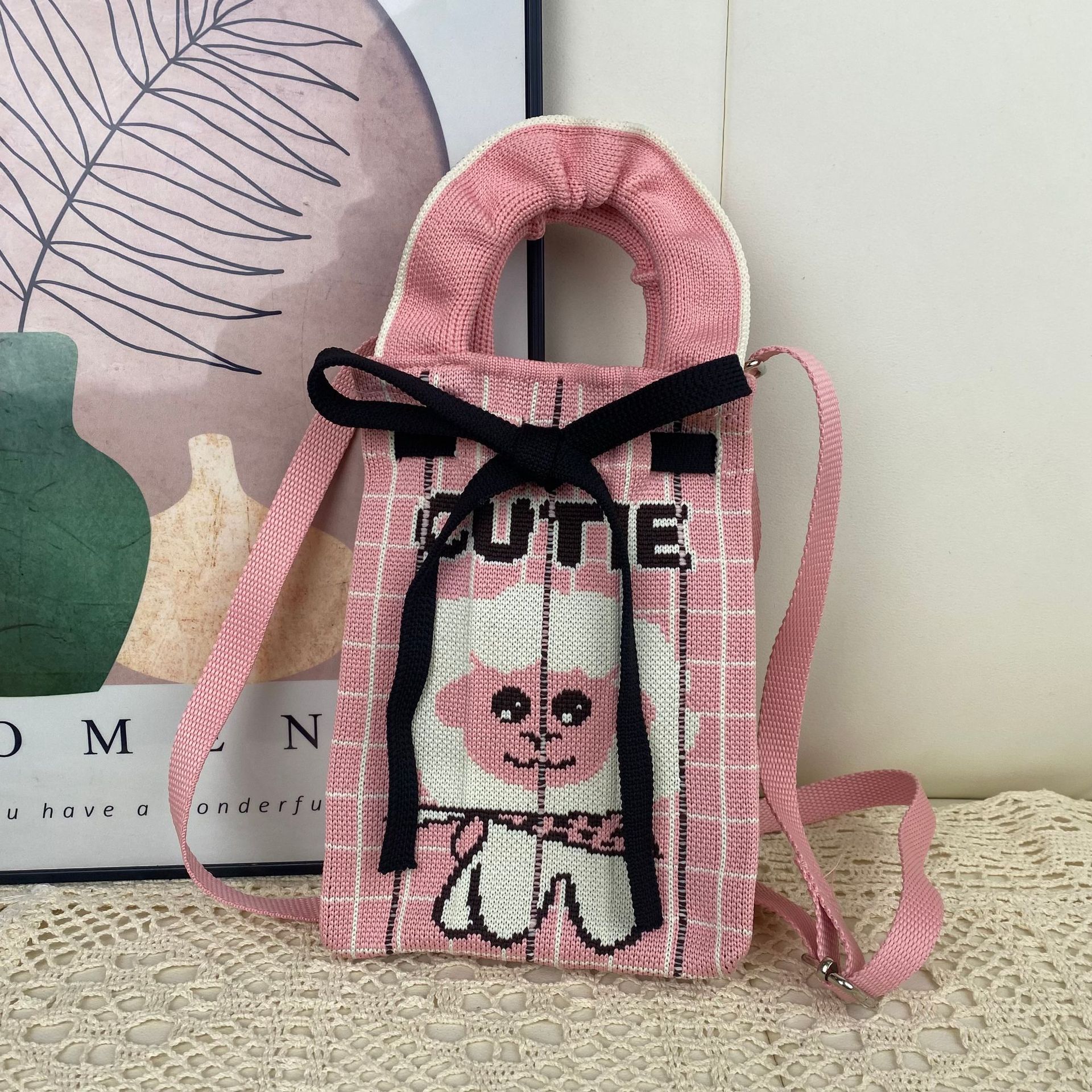 pink letters cartoon bow phone bag