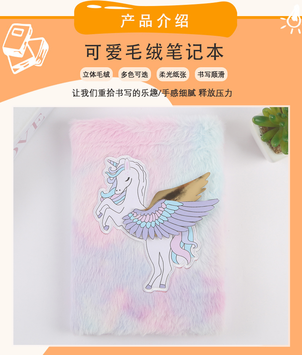 Product Name: Colorful Cartoon Angel Horse Plush Notebook Cross-border Children's Writing Journal Student Diary