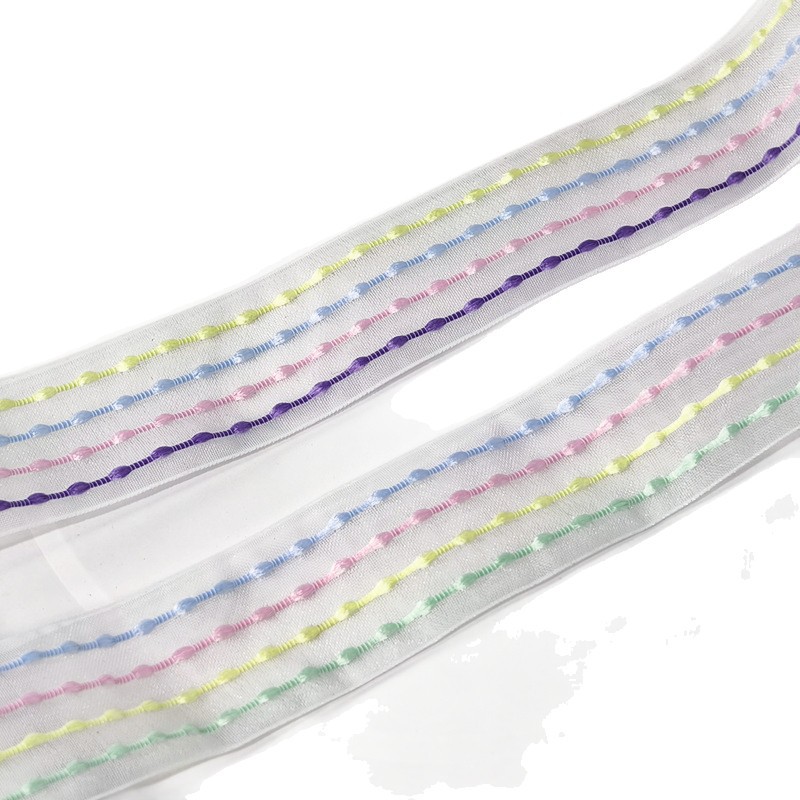 2.5cm four-color stripes organza tape-yellow purple size 10