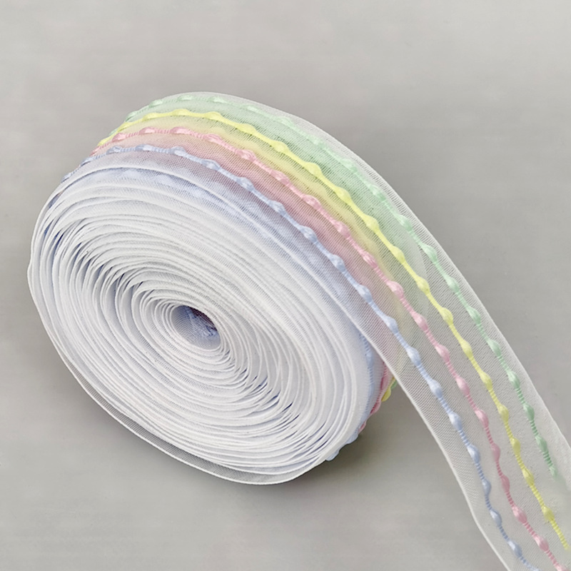 2.5cm four-color stripes organza tape-blue and green size 10