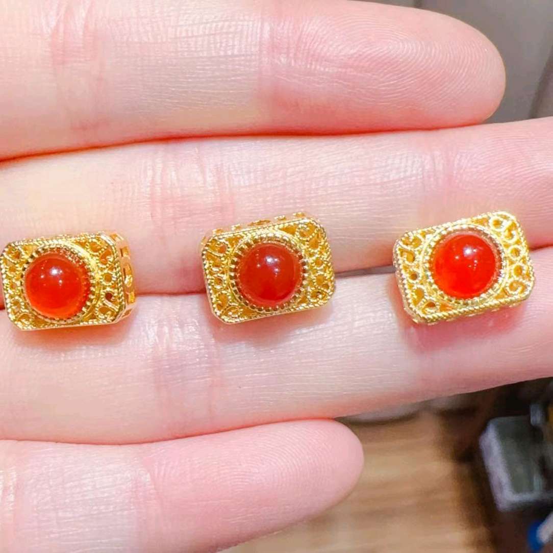 Crimson agate eyes like flames, gold ornaments and filigree like ancient weaving. One by one, these small pendants are the encounter of traditional craftsmanship and Oriental elegance, strung together on the wrist to form a touch of retro luxury charm.