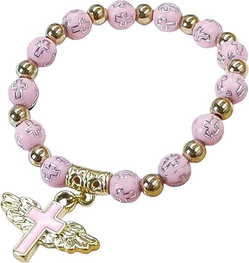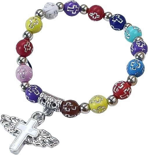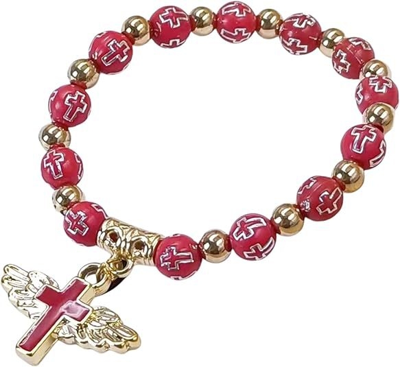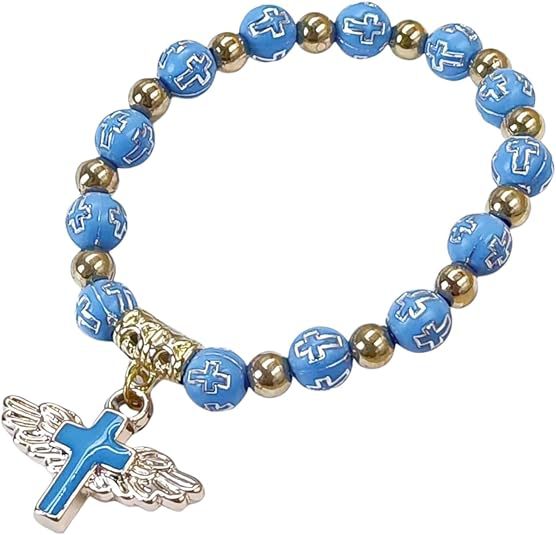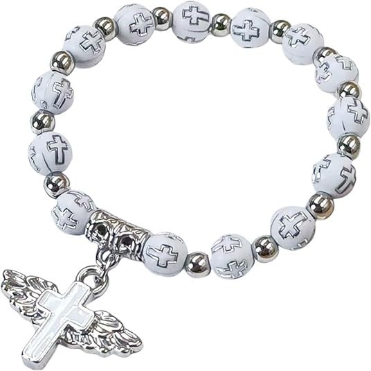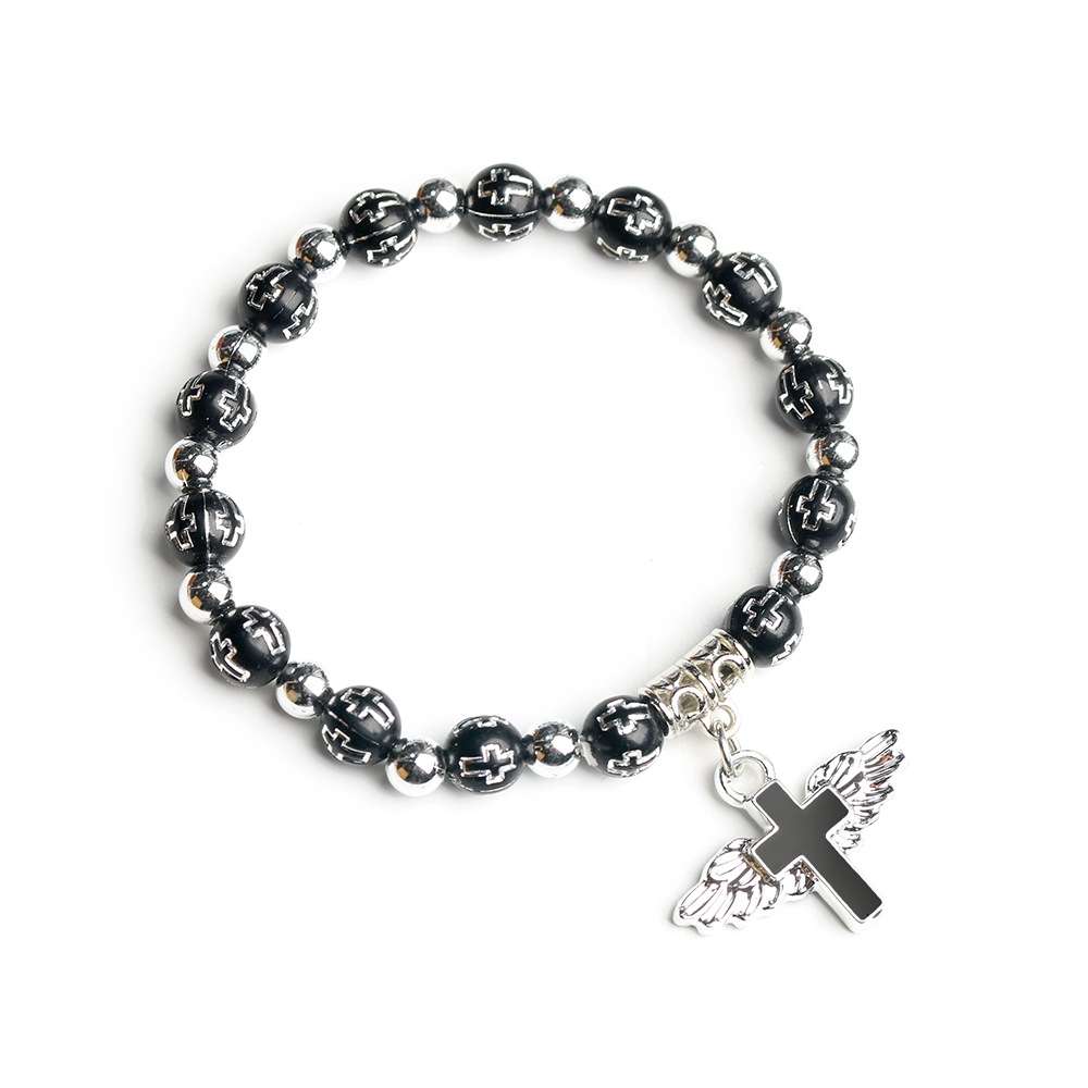 Cross-border hot-selling gold and silver acrylic cross lucky beads bracelet Drops of oil angel cross prayer beads bracelet Religious jewelry