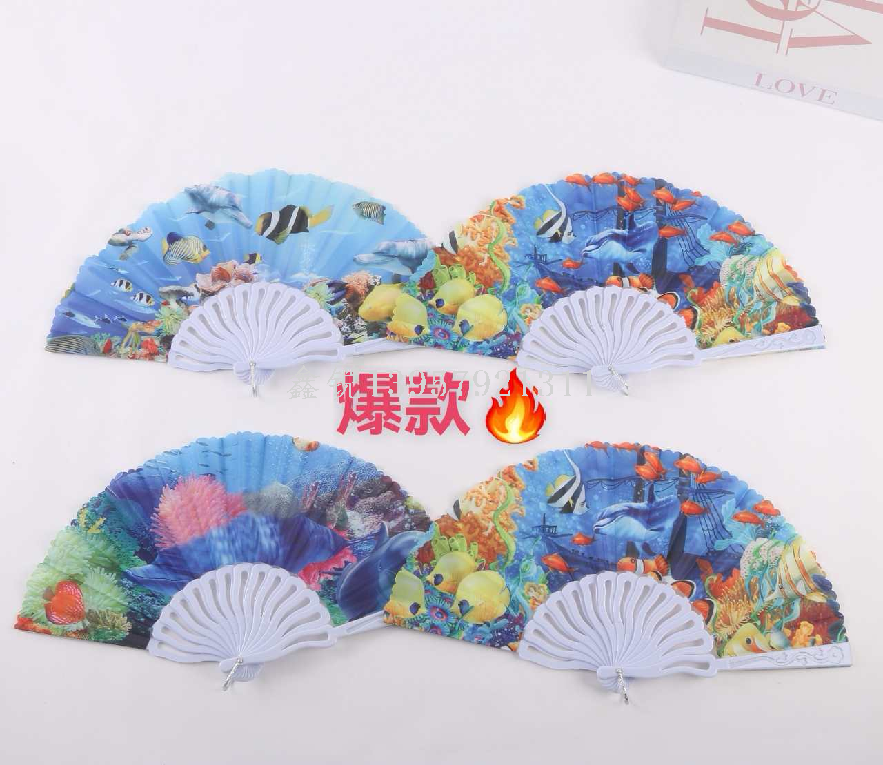 factory direct sales fan straight flat folding fan craft fan pattern custom white dragon pole literary travel fan wholesale ocean 中文版
