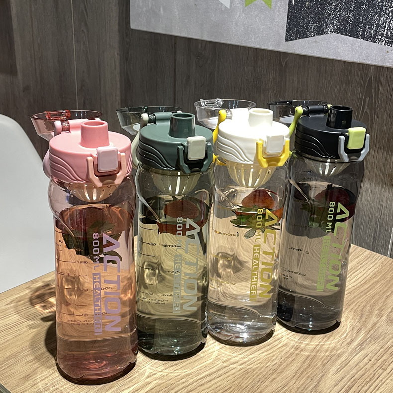 spring new plastic water cup portable bounce cover water bottle sports bottle outdoor sports large 800ml kettle