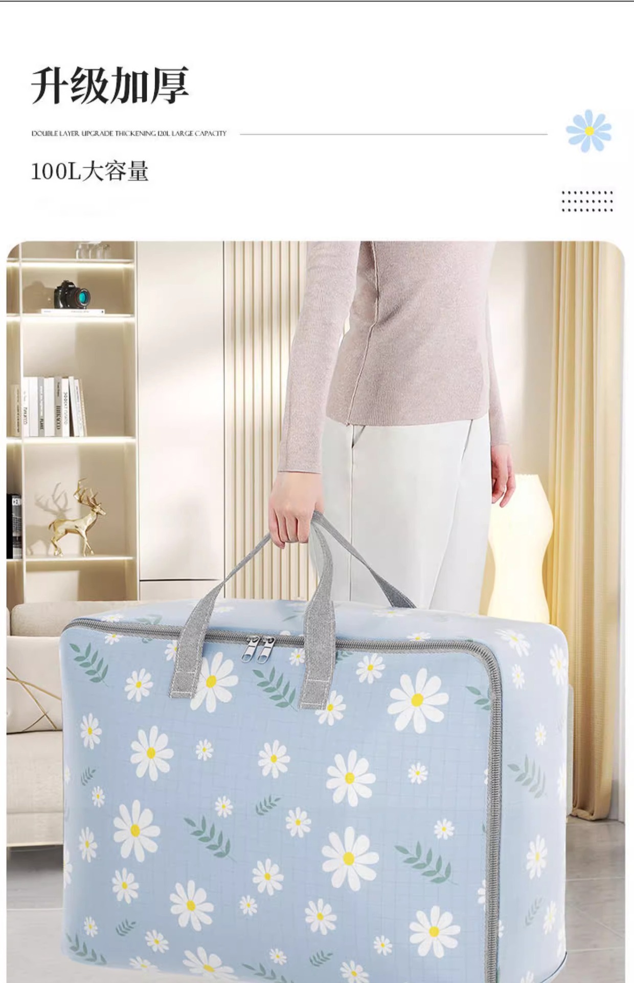 blue daisy-extra large [can hold 120 clothes/100l] 65*30 * 50cm