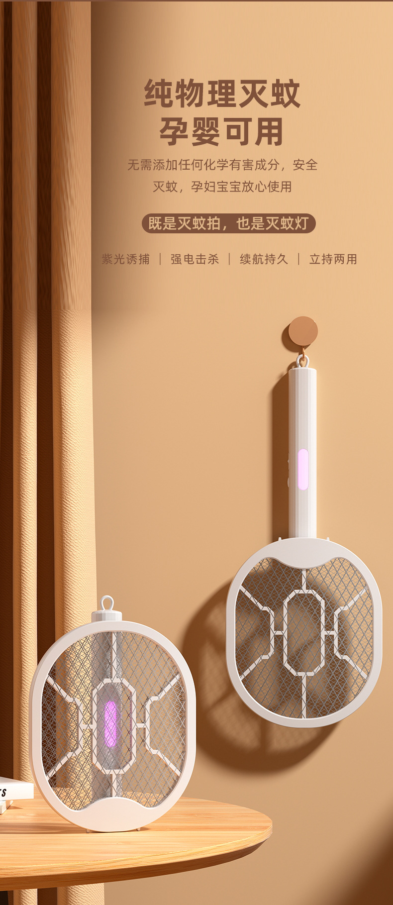 Product standard configuration: electric mosquito swatter + USB charging cable + instruction manual.