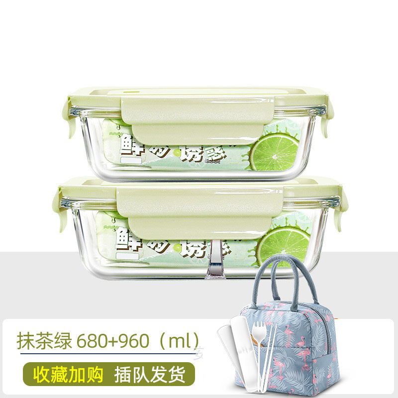 matcha green mid-length 680 + large-length three-compartment 960 + bag + tableware