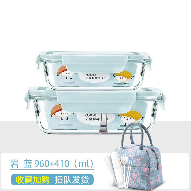 rock blue mid-length 680 + large-length three-compartment 960 + bag + tableware