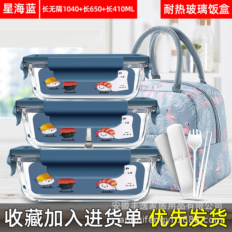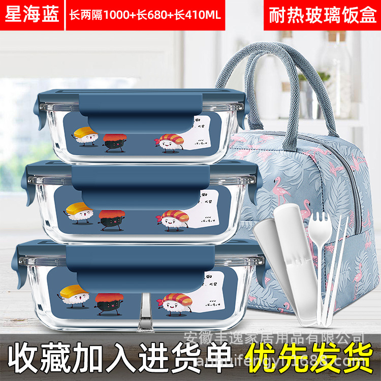 xinghai blue big long two-compartment + medium long two-compartment + small long + flamingo big bag + porcelain white tableware