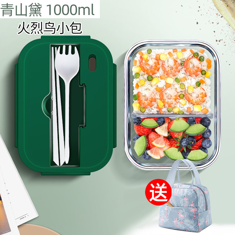 qingshan dai porcelain white tableware lunch box 960ml + flamingo bag
