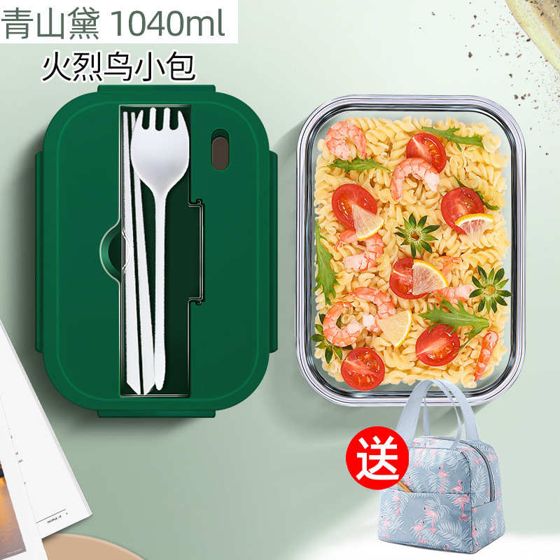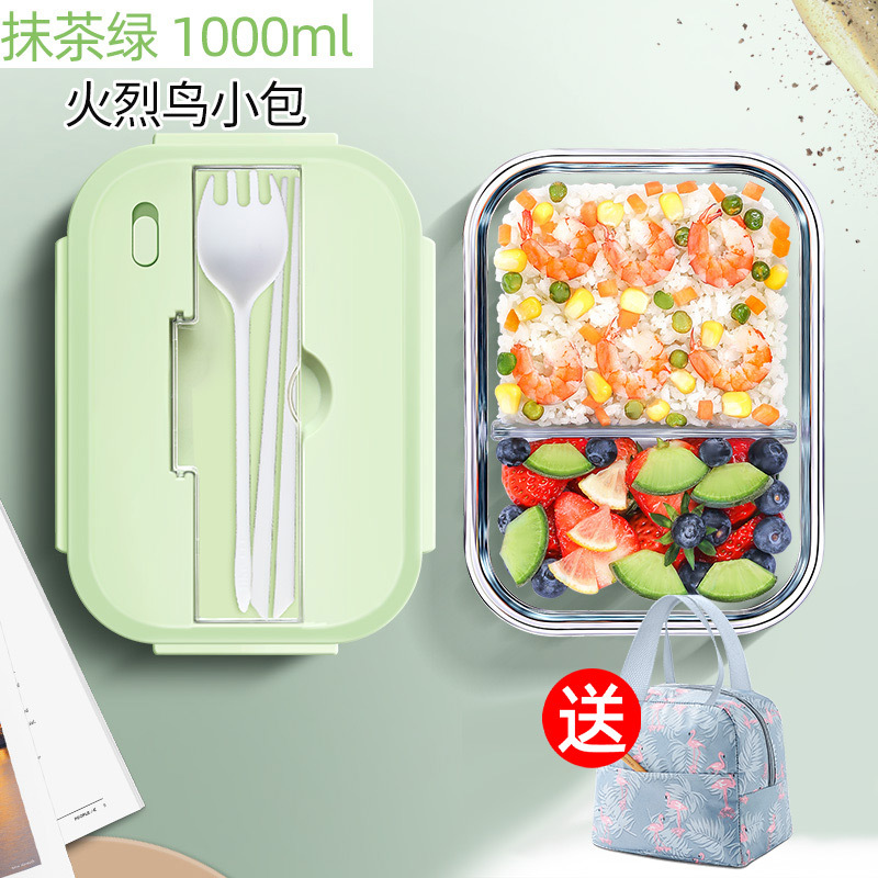 matcha green porcelain white tableware lunch box 1040ml + flamingo bag