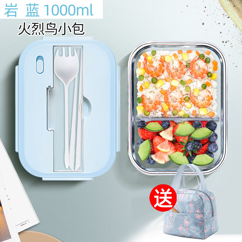 blue rock porcelain white tableware lunch box 1000ml + flamingo bag