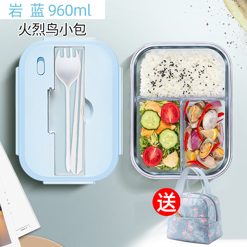 blue rock porcelain white tableware lunch box 1040ml + flamingo bag
