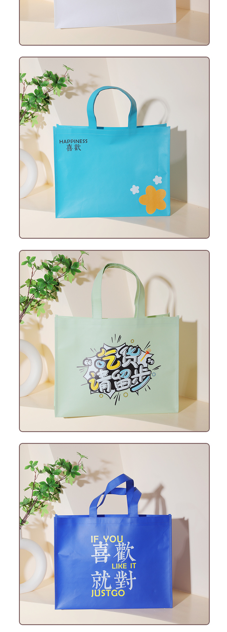 simple all-match film non-woven fabric handbag thickened clothing store shopping bag custom advertising printed logo 中文版