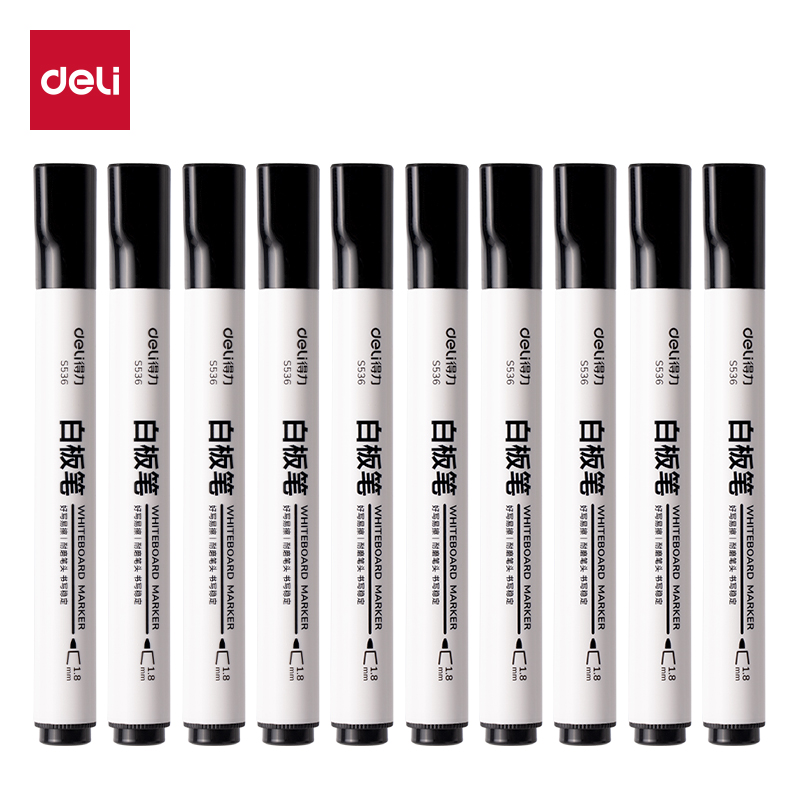 deli quick-drying easy-to-wipe fiber wear-resistant office conference room erasable black whiteboard marker 中文版